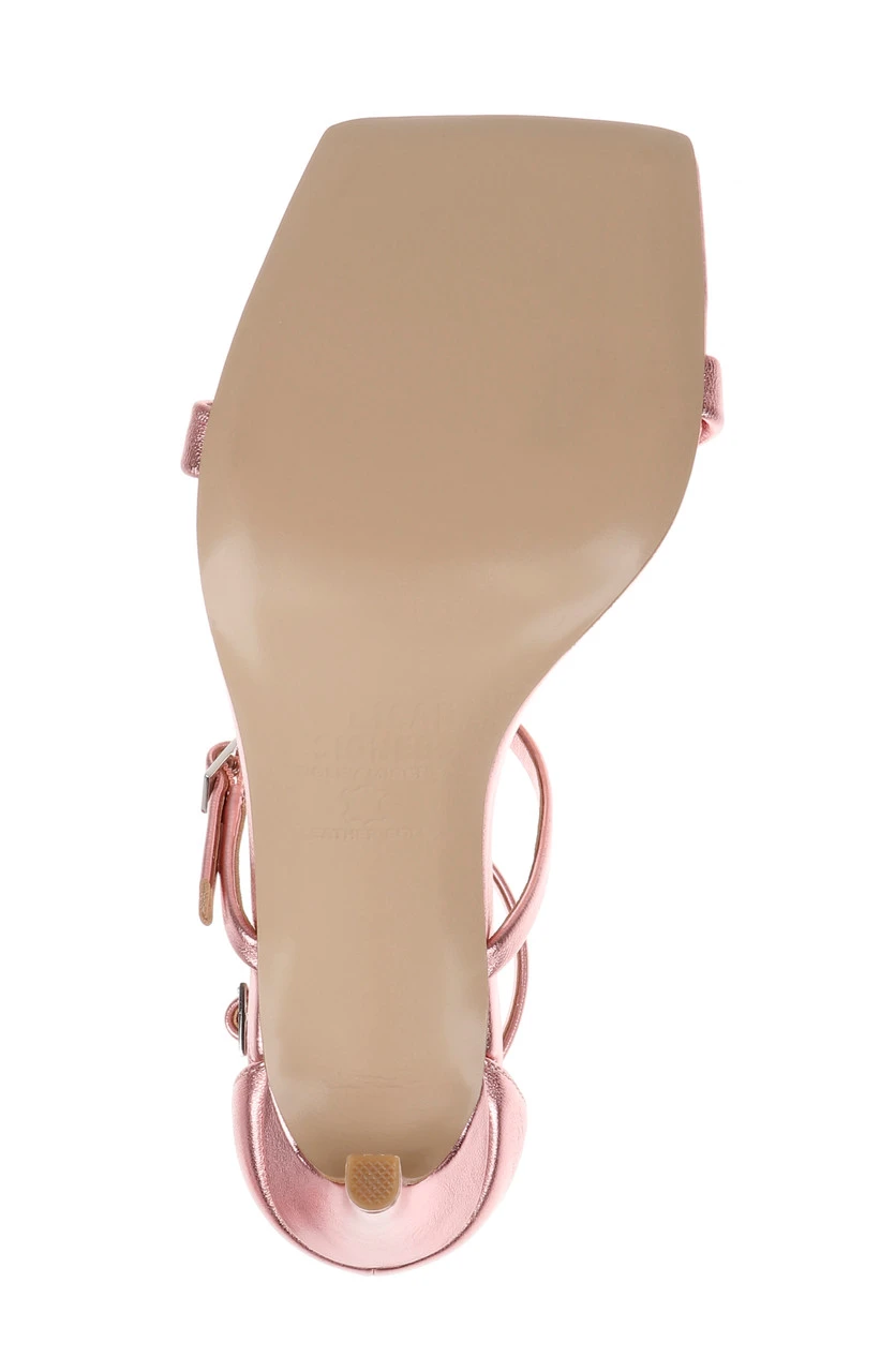 These stiletto heels are adorned with an ankle strap and two slim straps across the vamp, creating a touch of glamour that complements its metallic finish perfectly. And because of their open, square-toed design and heel counter, these heels will be just as comfortable on your feet as they are stylish.