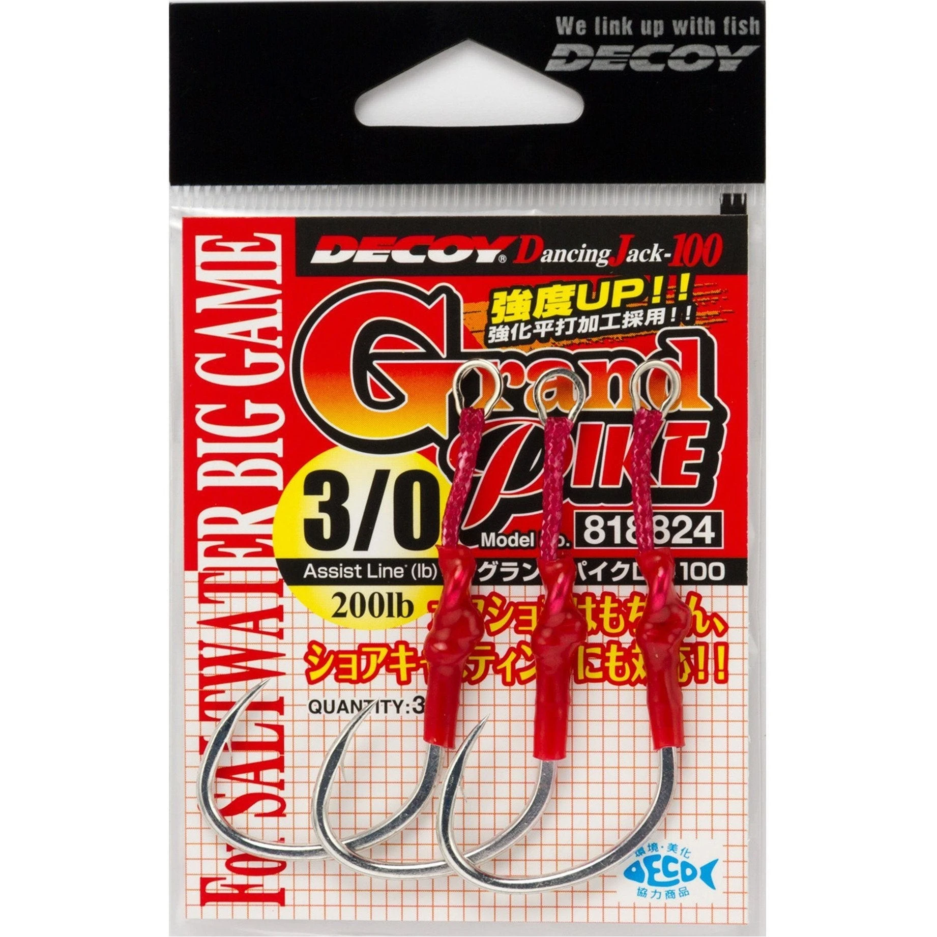Decoy – DJ100 is a single type assist that adopts the power model “Pike Type R” of “Pike” which is not exaggeration to say that the concept of the jigging hook has been completely renewed. The speed of the hanging, the holding performance, and the one-assist utilizing its power, it is widely applicable from first jerk to slow jerk. All adopt GP rings, and the assist line is a braid line specification for the inshore jigging compatible class of # 1 to # 3/0. Up to 6/0 adopts a four-knit specification (6 knits for # 8/0) with moderate tension to increase strength.