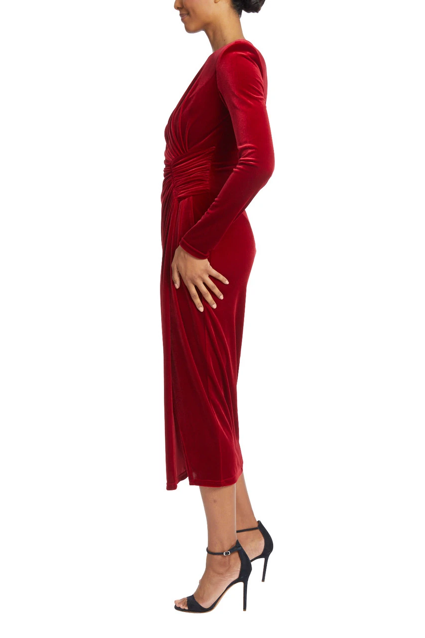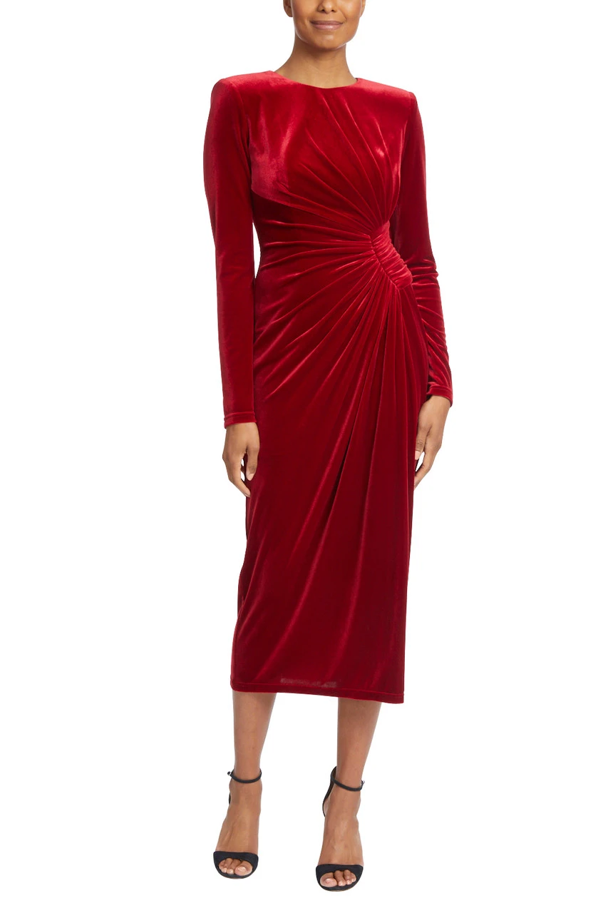 Start your day looking like a self-assured goddess, enveloped in this luxurious velvet dress. This design can take you from the office to dinner with friends at your favorite restaurant.