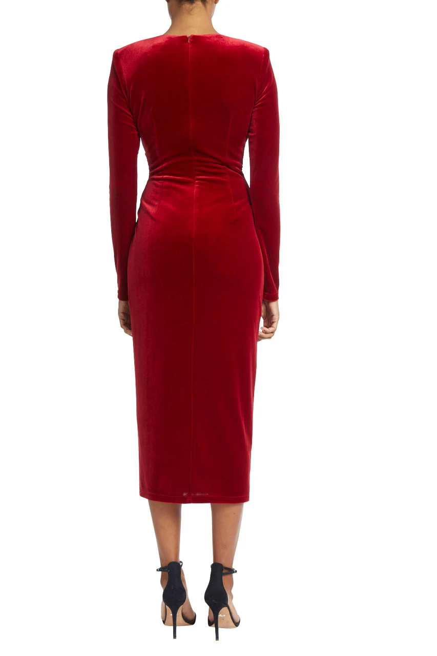 Long sleeves and shoulder pads give structure to your frame and exaggerate your hourglass silhouette. The ruched detailing emphasizes your form, allowing you to celebrate and honor your feminine energy while you exude strength.