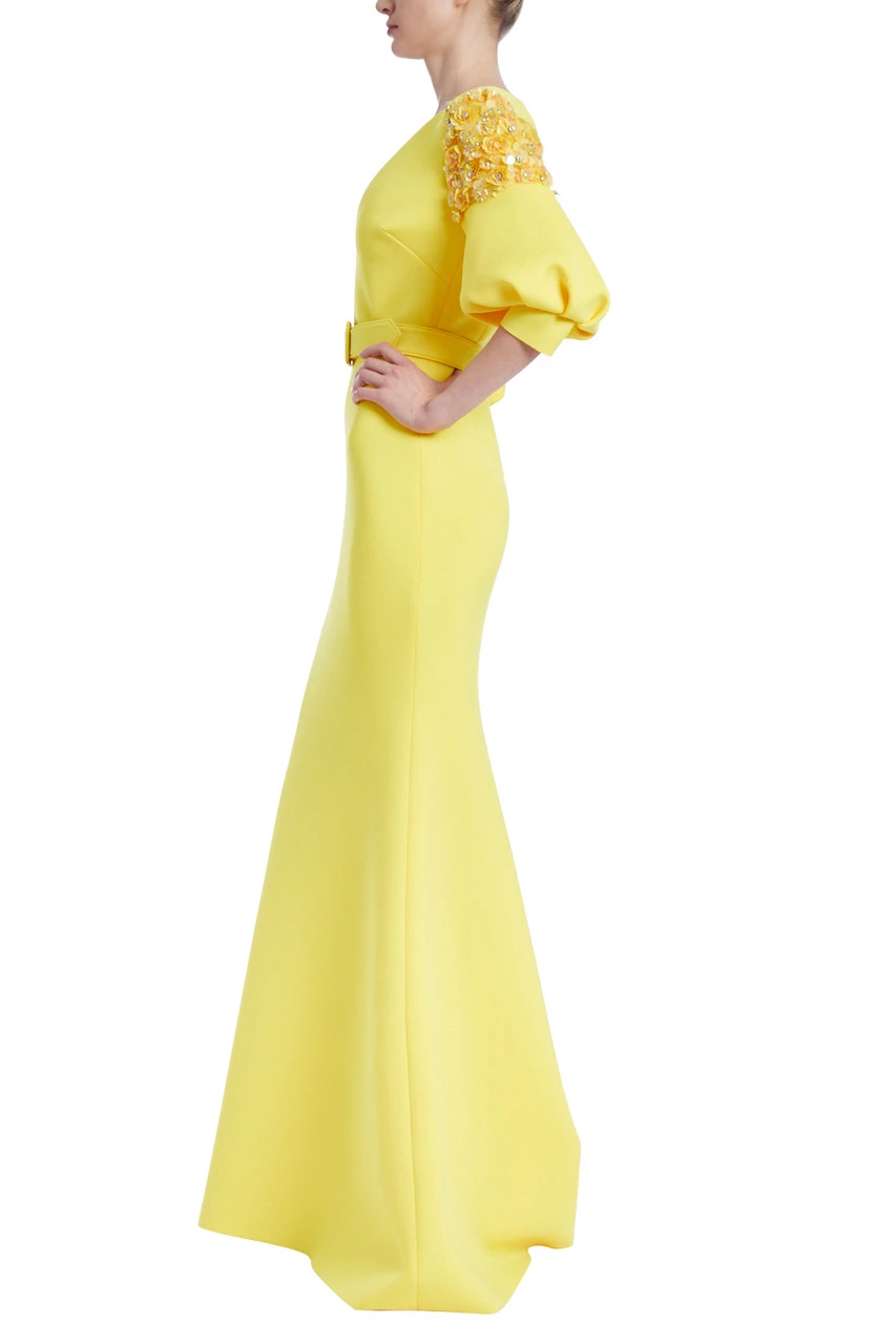 Graceful, yet awe-inspiring, simple yet exceptional, this gorgeous yellow gown represents the beauty of spring. Slip it on and step into your fairytale.
