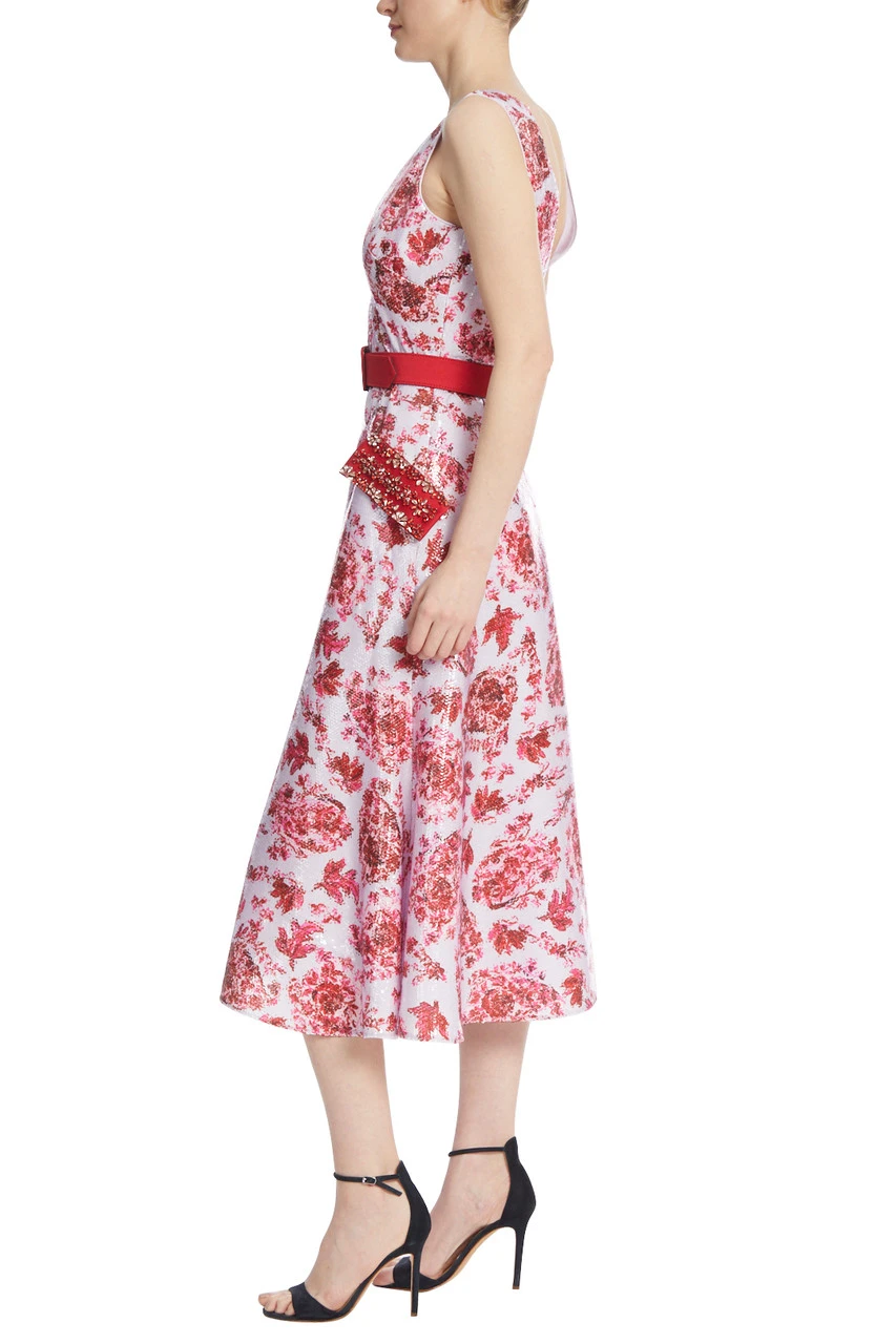 SC3801 | Belted Floral Dress with Beaded Pockets