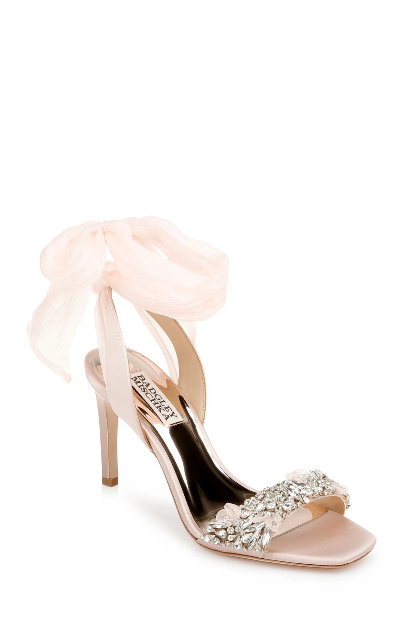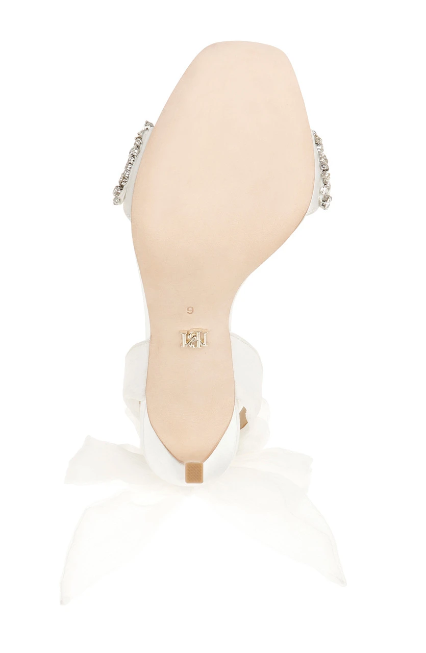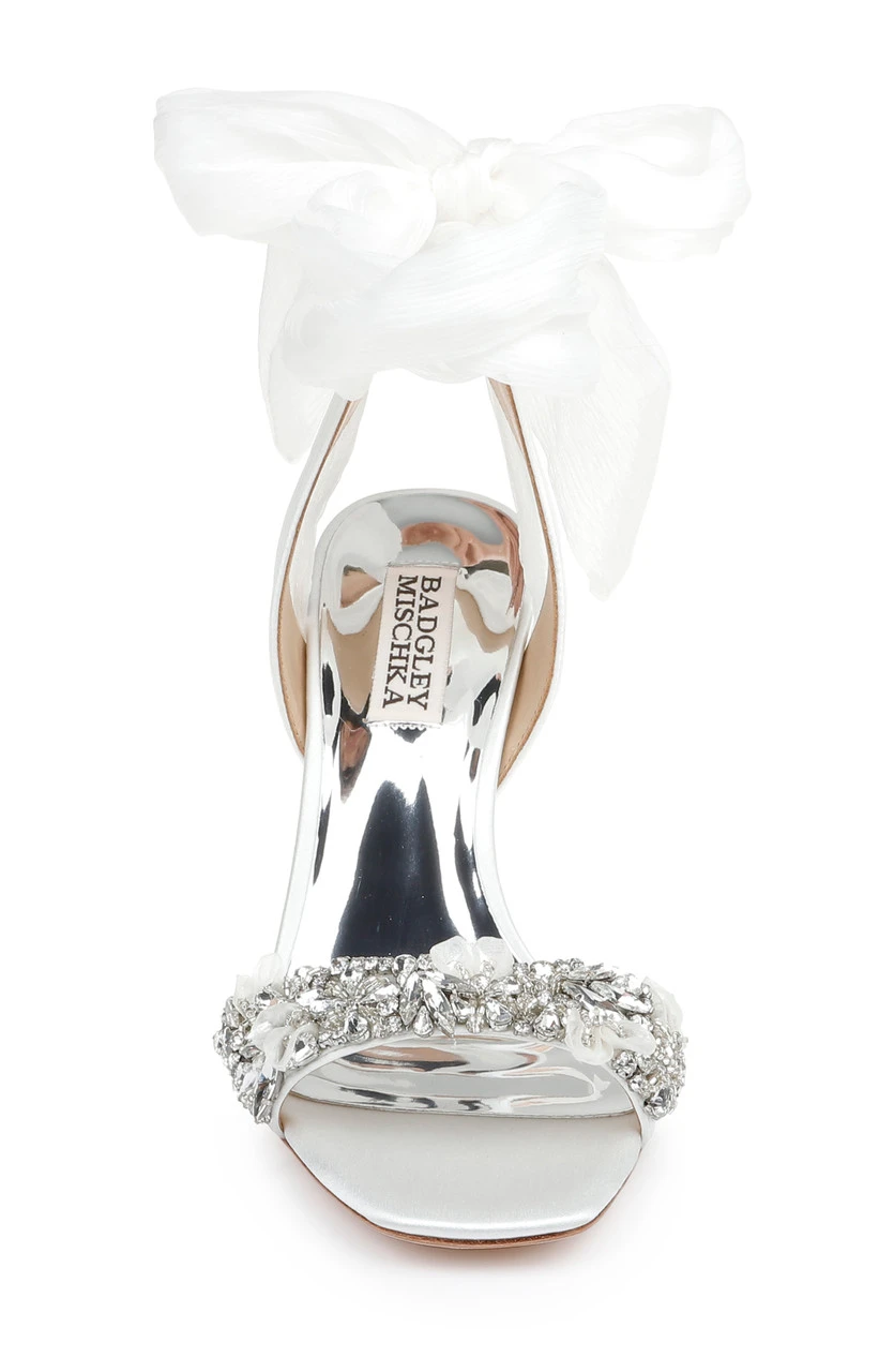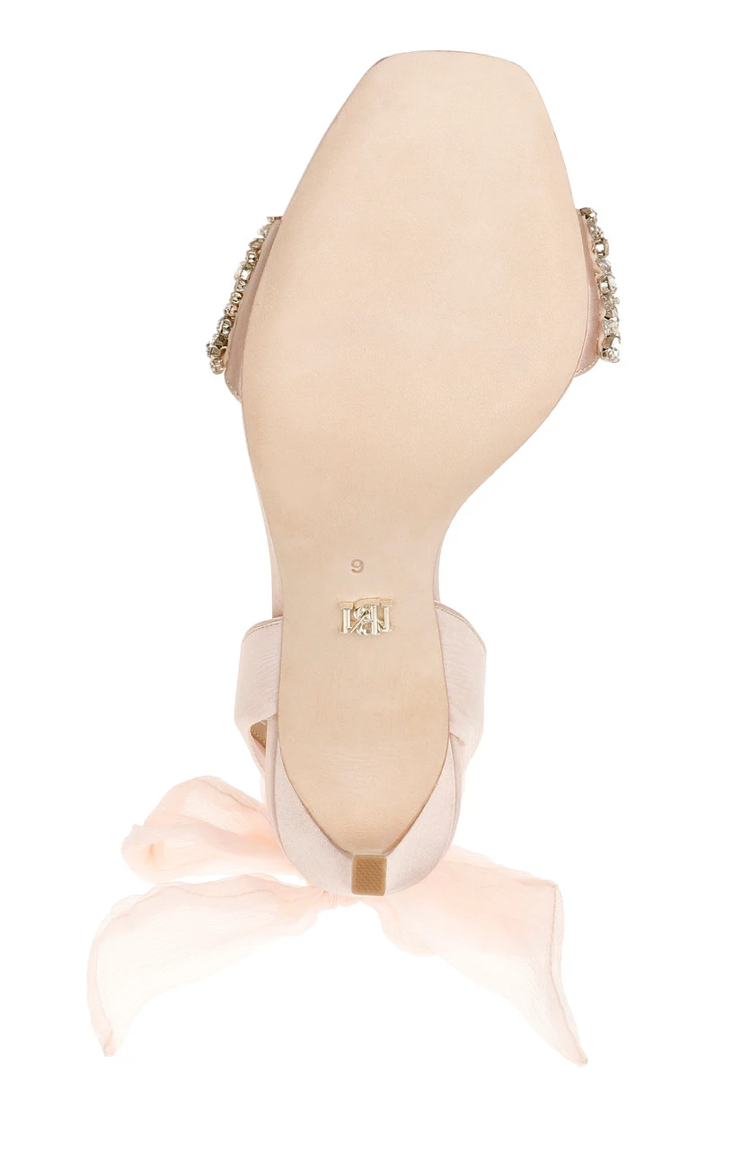 Product Features Frosted sparkles wrap around your toes like a luxurious embrace, while the satin ankle strap adds volume and a fairytale charm that all princesses have in common. The towering heel will work wonders for your posture.