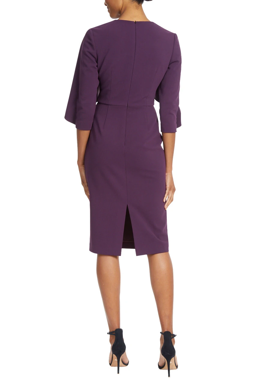 This plum dress is a fall favorite. Wear it to professional events, lunch dates, and cocktail parties; dress it down with knee-high boots, or elevate your look in Badgley Mischka stiletto heels and fabulous jewelry.