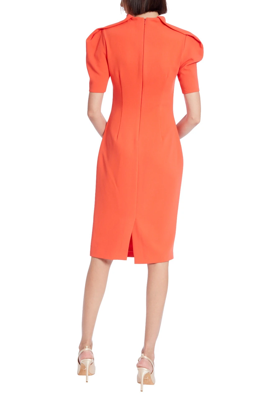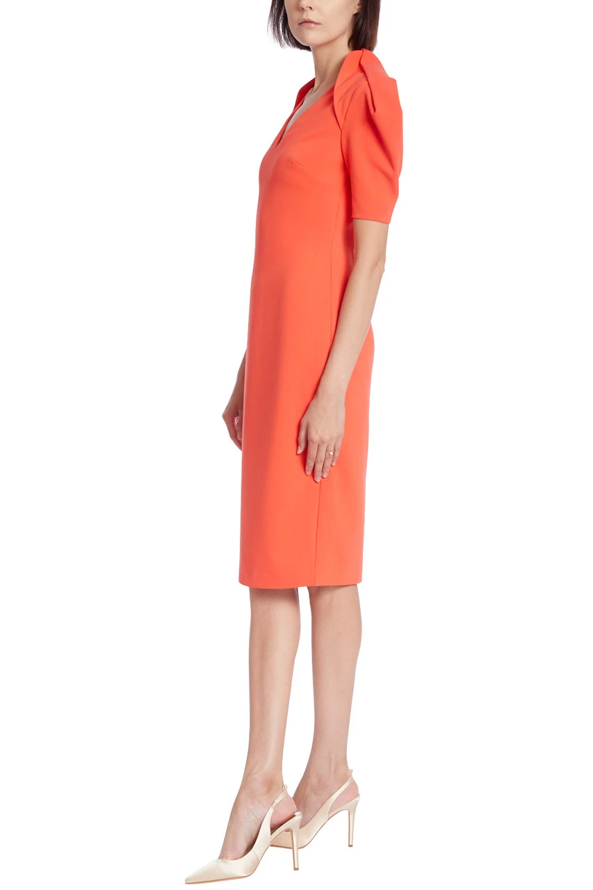 The Drama Shoulder Sheath Dress is a timeless style with modern touches: the feminine v-neckline, short sleeves and puffed shoulders all come together to create one amazing silhouette that’s modest enough to wear in any situation. Plus, it’s made from stretch crepe, so you’ll be able to dance the night away without worrying about your dress getting in the way.