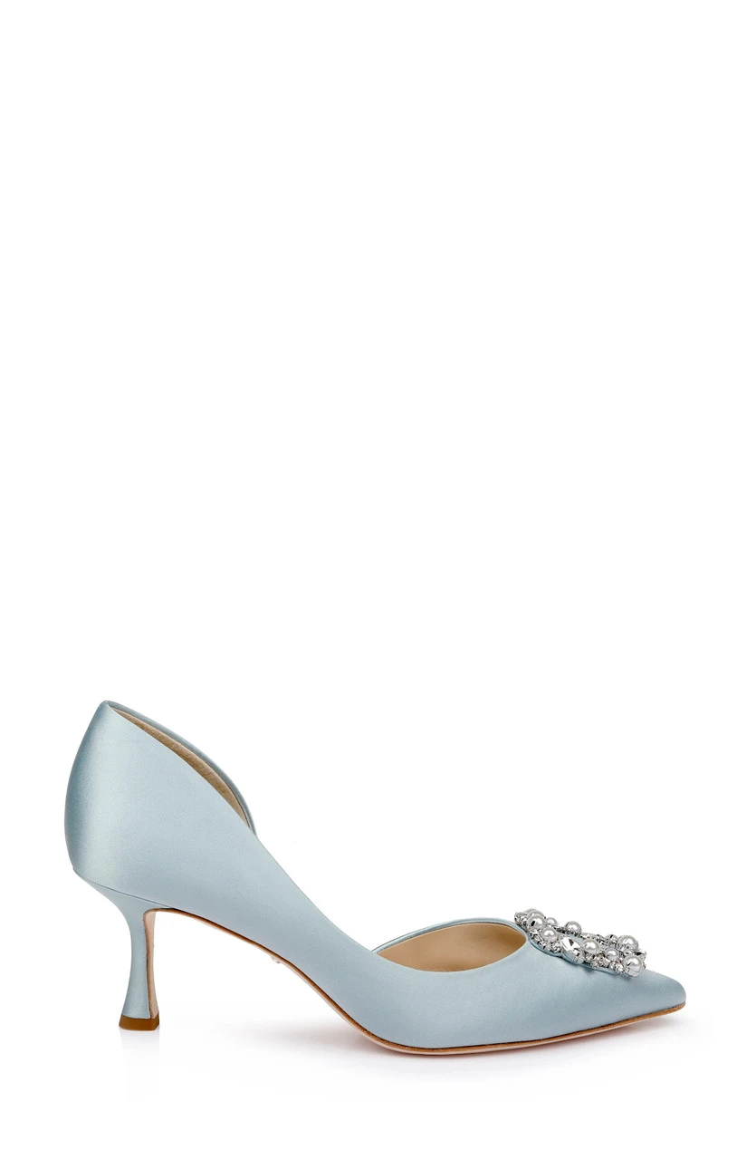 In a pointed toe and mid-heel silhouette, the Fabia is your go-to shoe when you want to make a statement. The shapely heel adds extra height and elegance, while a silk satin upper ensures it feels as fabulous on your foot as it looks. A crystal-accented toe buckle lends just the right amount of bling to the look, turning ordinary into extraordinary.