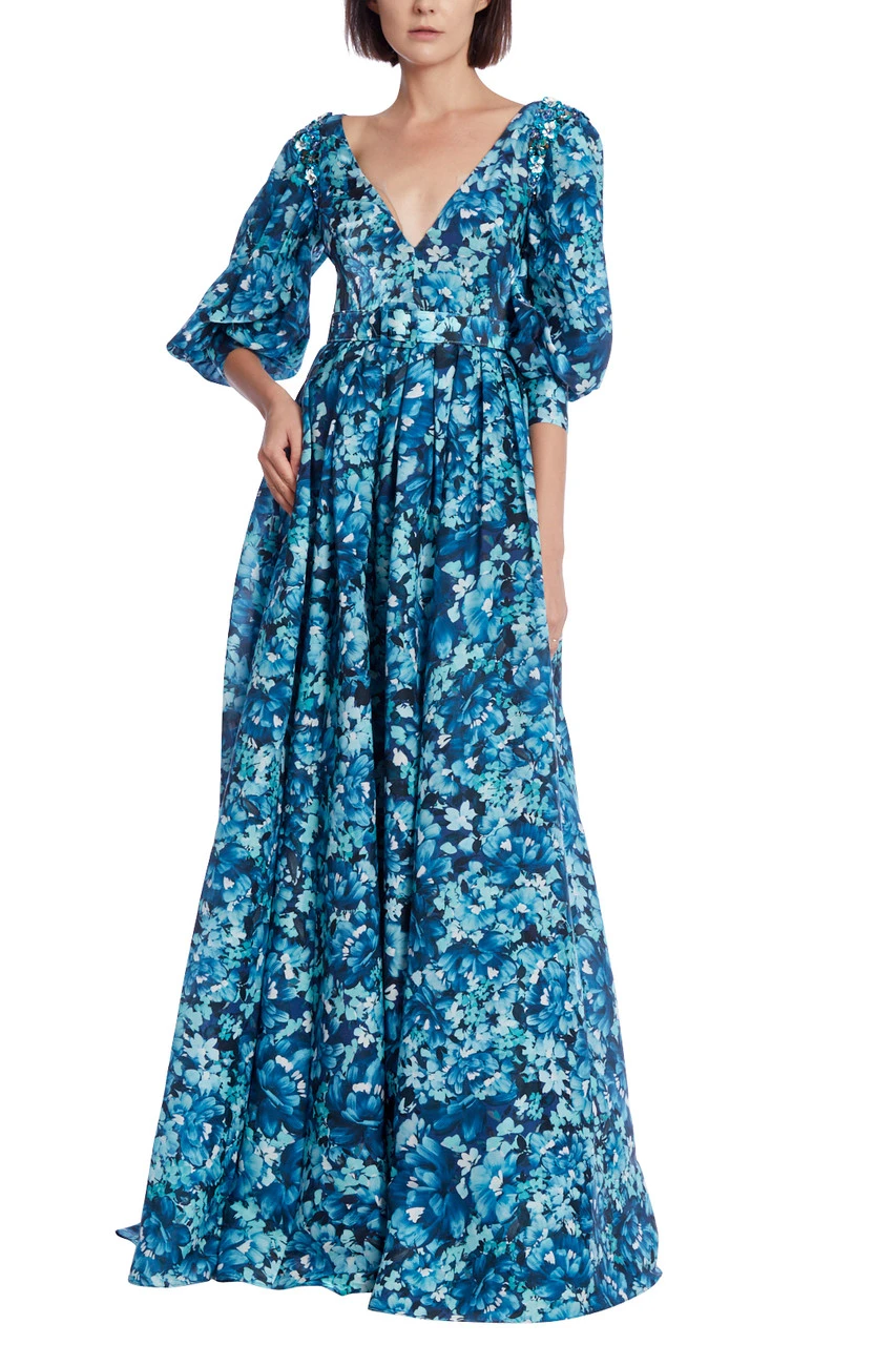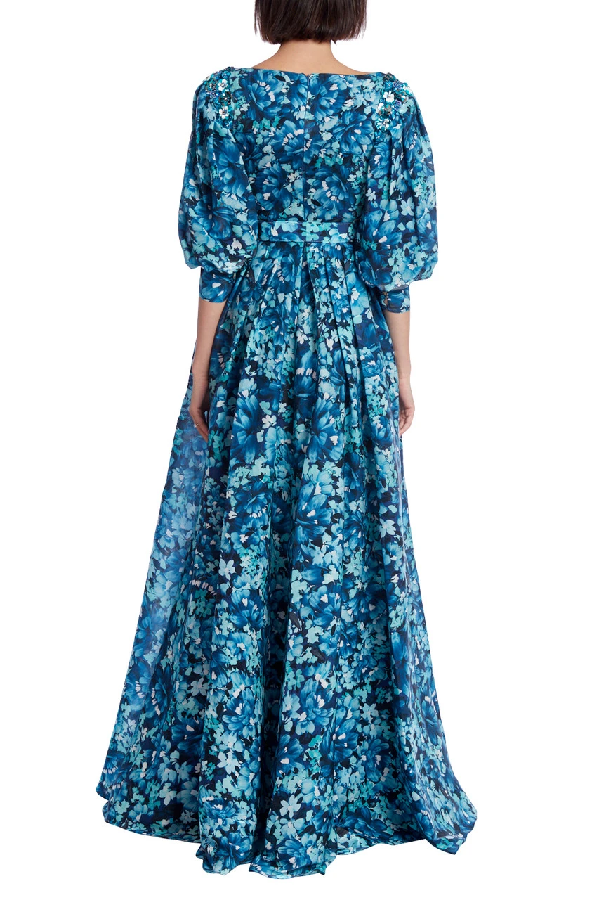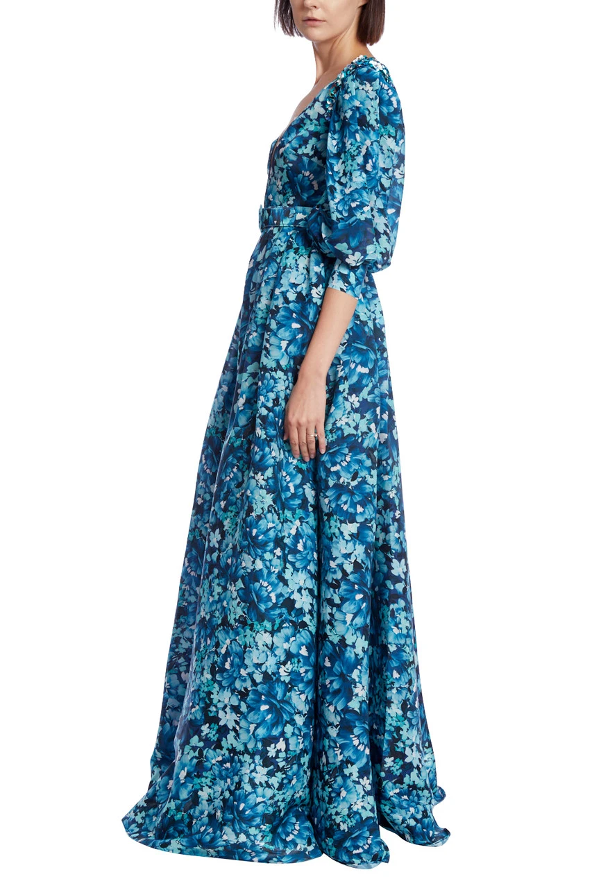 EG3851 | Floral Print Puff Sleeve Maxi Gown