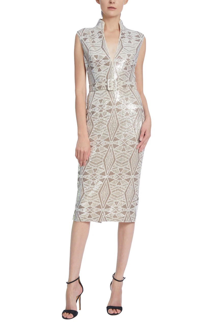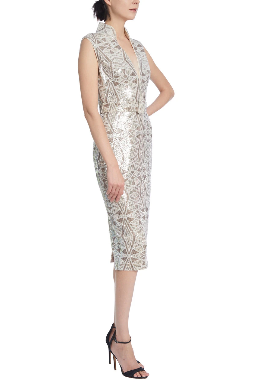 SC3822 | Geometrical Sequined Sheath Dress with Mock Neck
