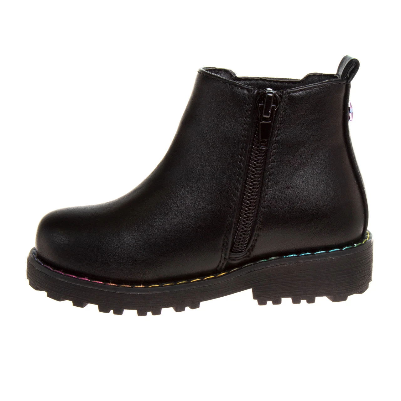O-BM92057| Girls’ Faux Leather Booties with Rainbow Stitch