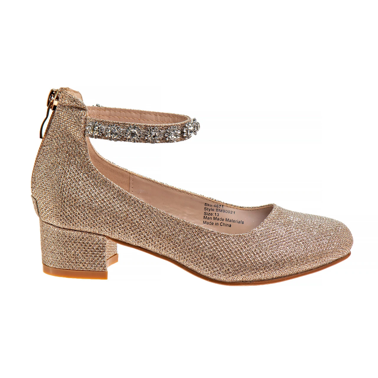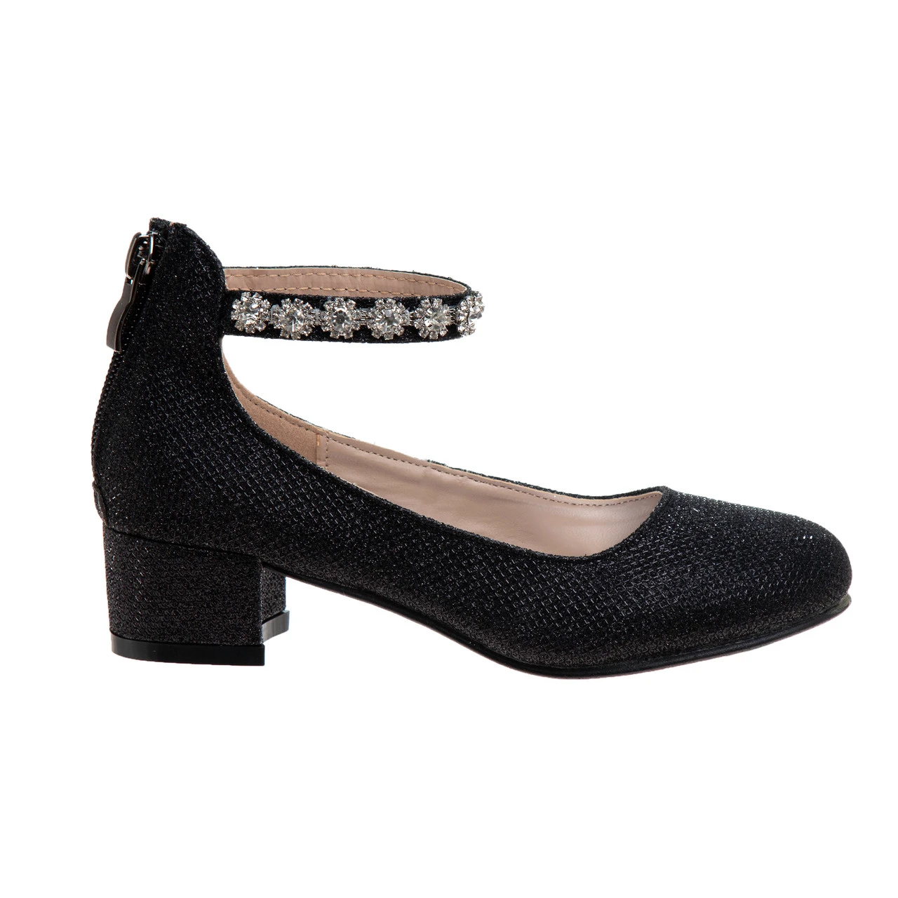 O-BM90021M | Girls’ Glitter Mesh Block Heel