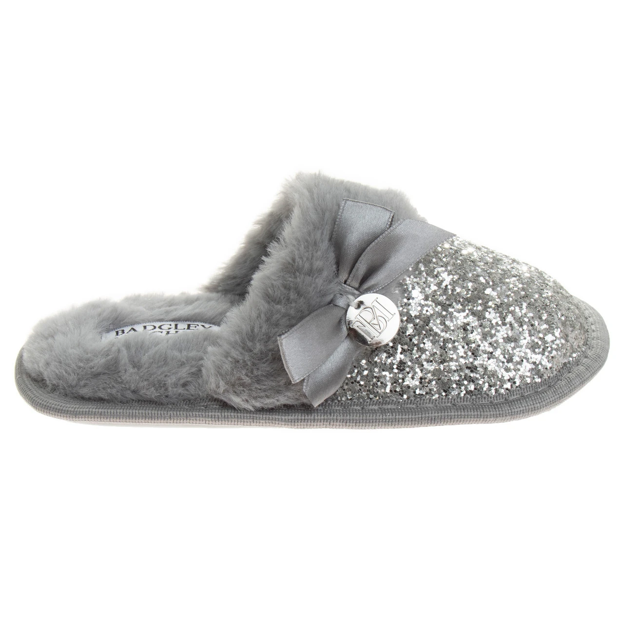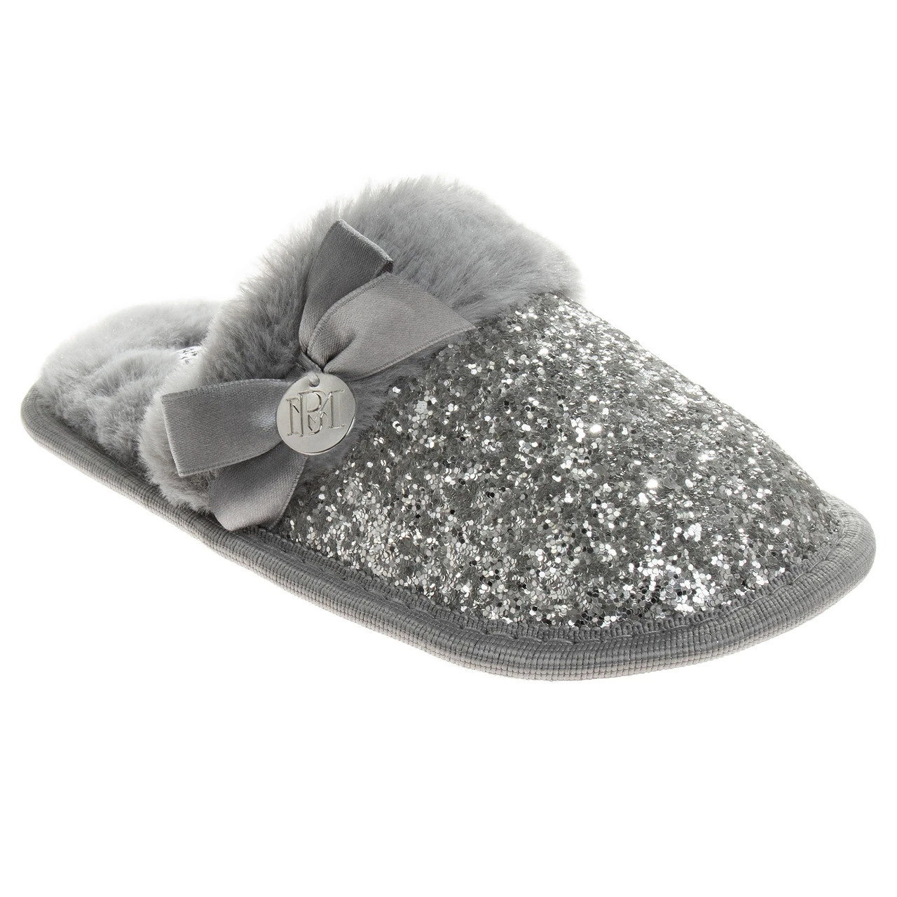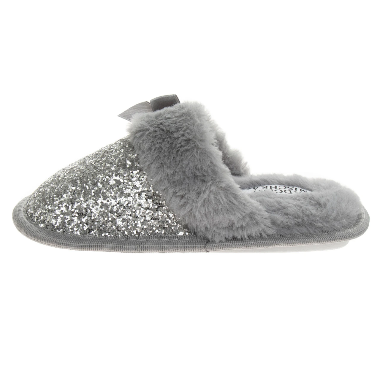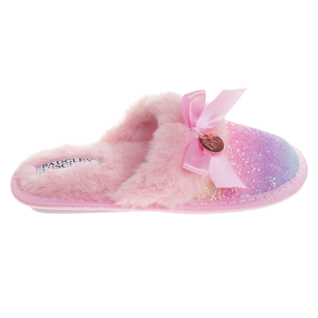 O-BM92064H | Girls’ Glitter Scuff Slippers with Faux-Fur Lining