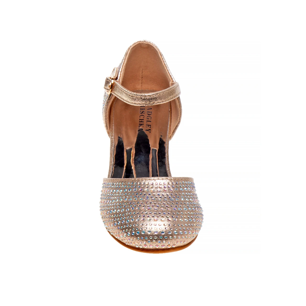 These shoes are perfect for any girl who loves dressing up—they’re covered with colorful rhinestones that sparkle in the sunlight! The metal buckle closure on the ankle strap can be adjusted to fit perfectly, and the closed toe ensures that all toes will stay protected and comfortable as you dance the night away.