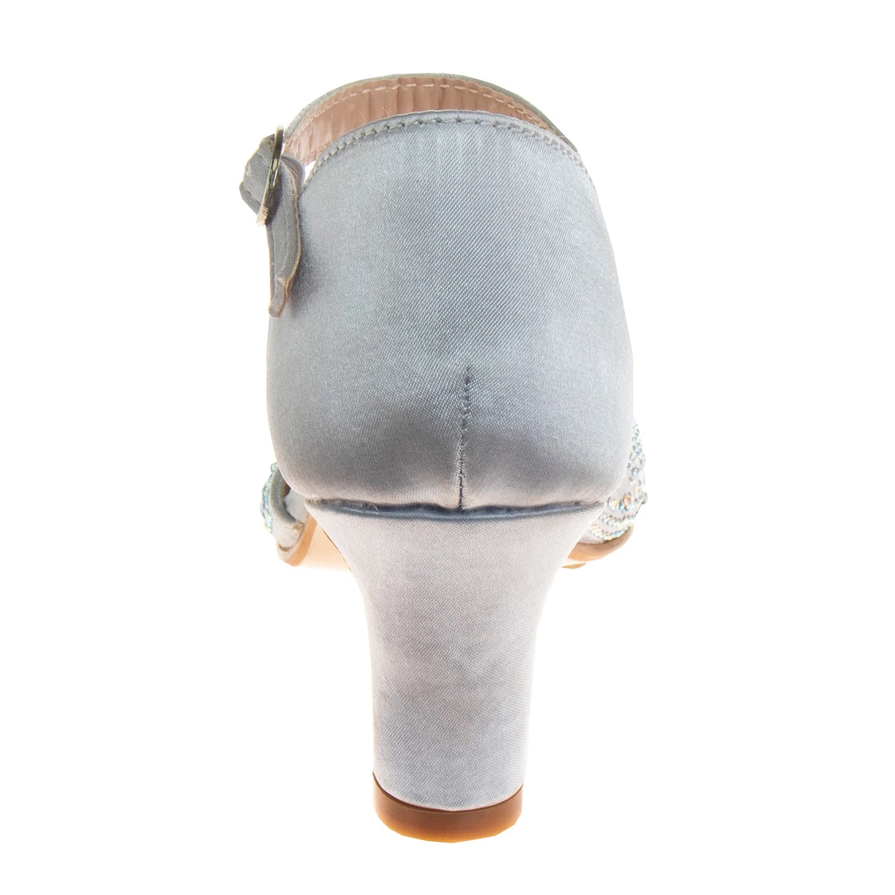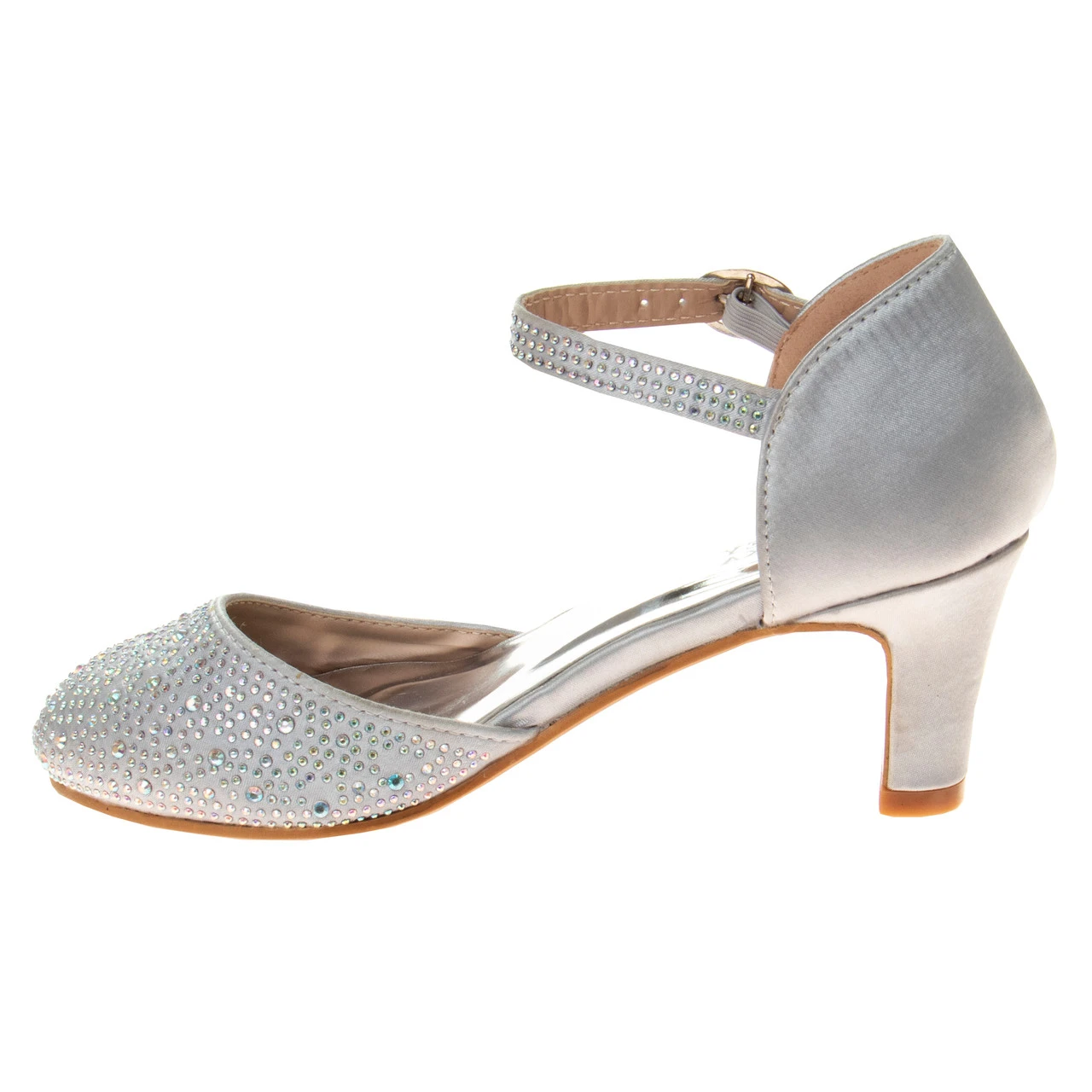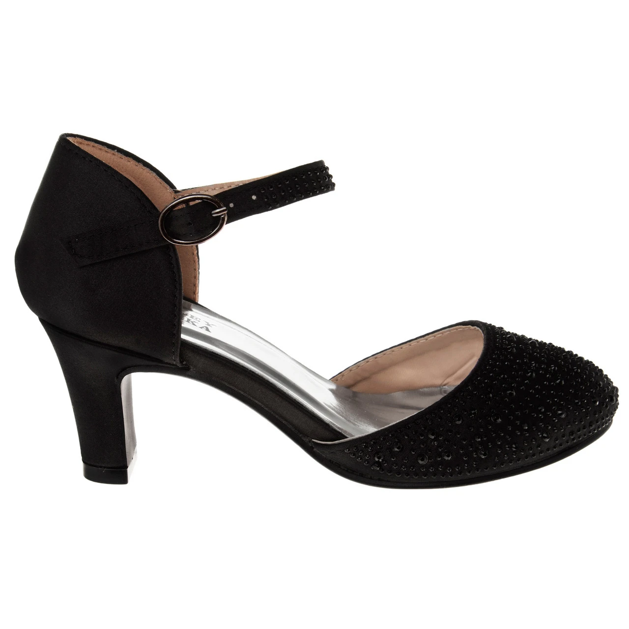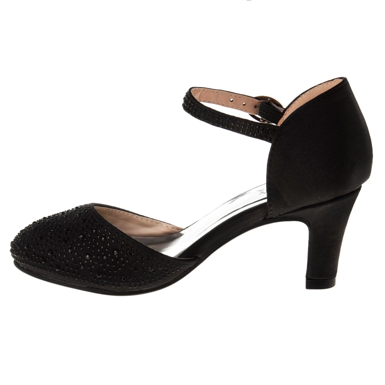 These shoes are covered in glittering rhinestones that will make any girl feel like a modern-day Cinderella. The ankle strap has a buckle closure and closes around the ankle for security, while the closed toes allow them to be worn all day long without worrying about getting sore feet.