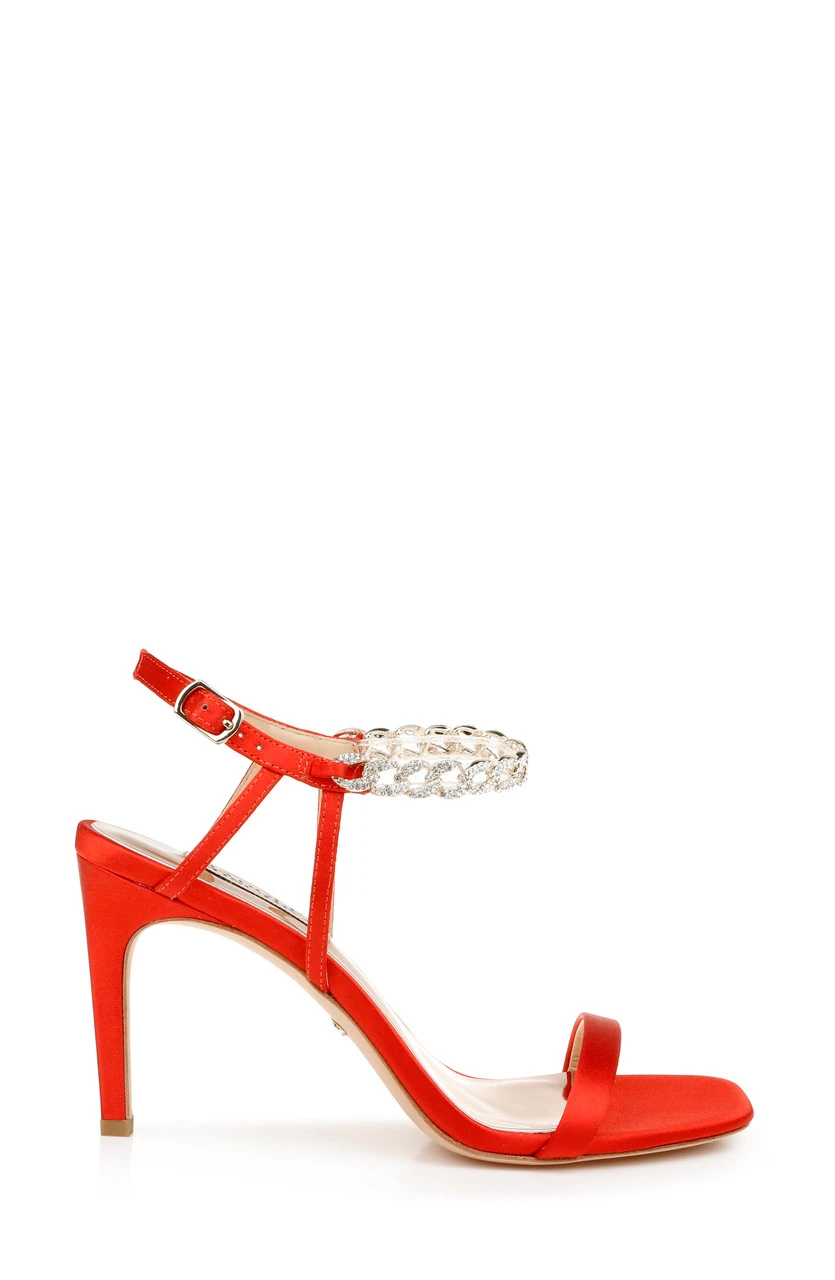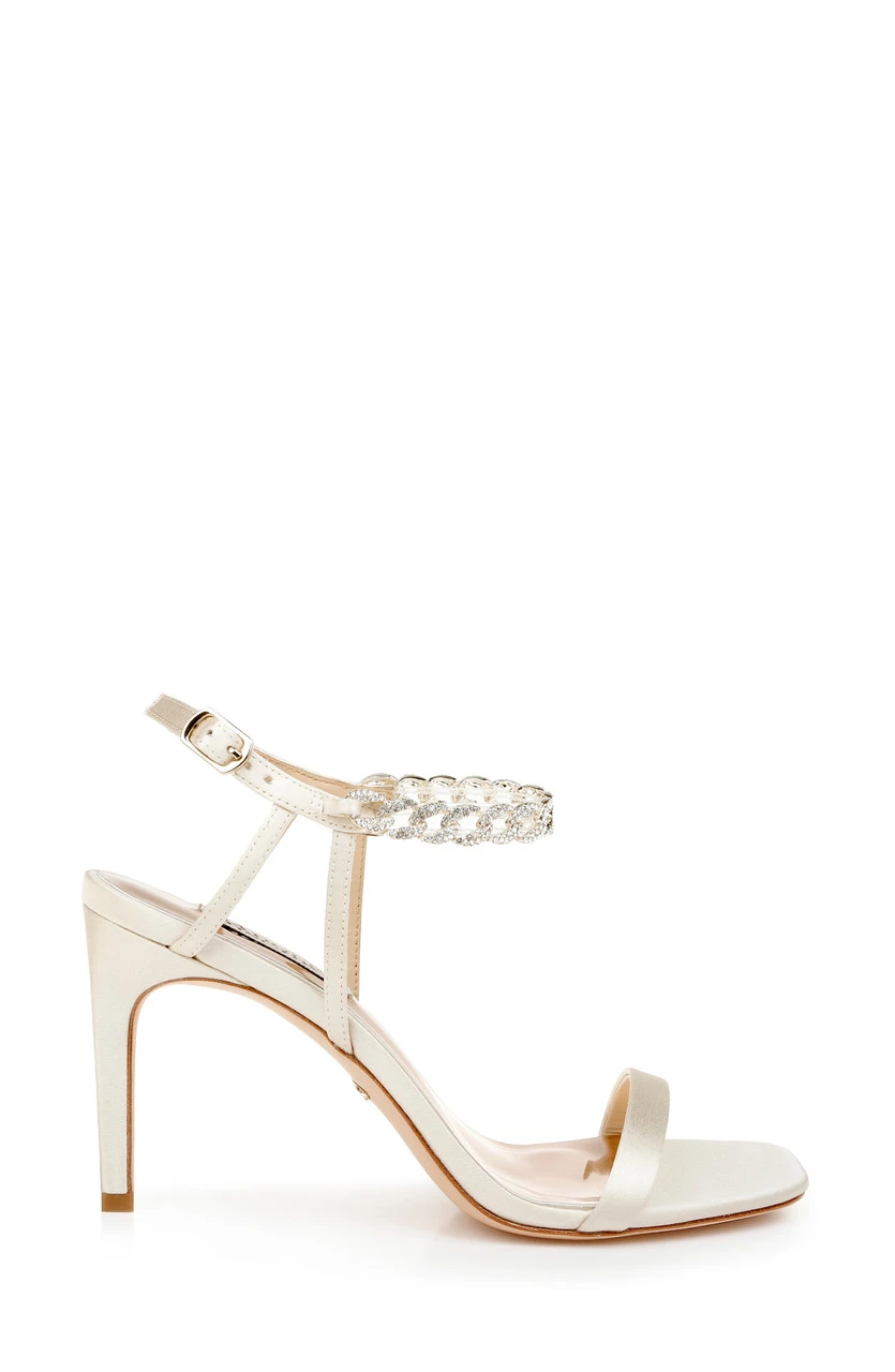 A modern, flirtatious take on a classic stiletto sandal, fit for spring parties and bridal showers. Kai will keep you looking and feeling cool, with barely-there straps and crystal-adorned chain detailing.