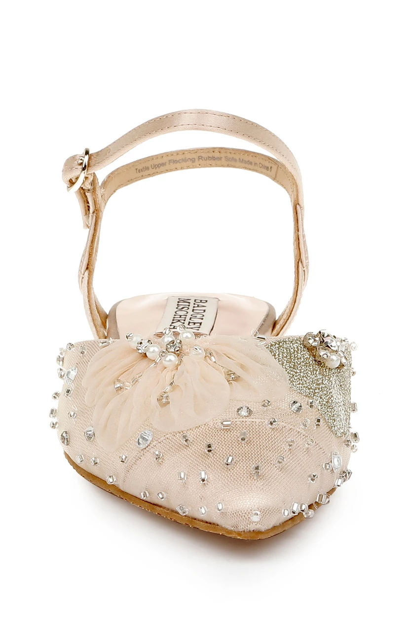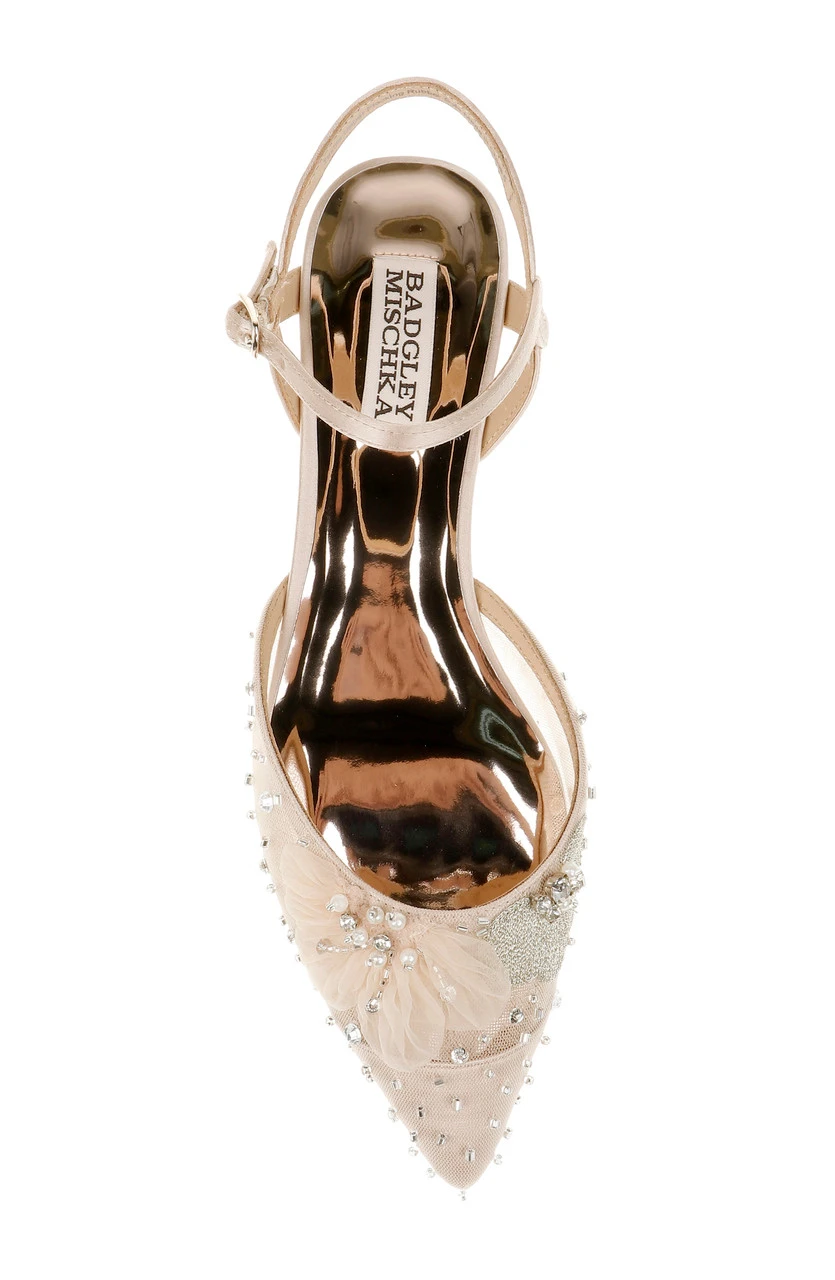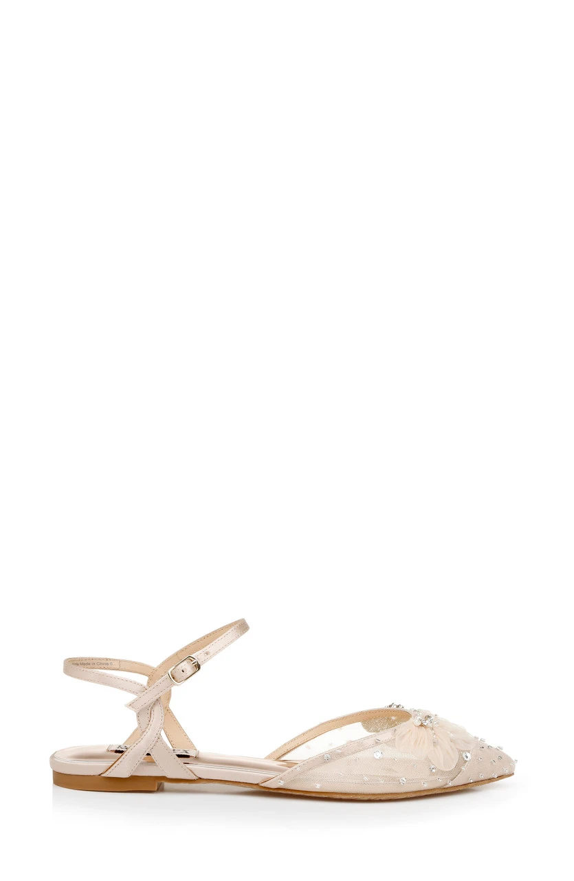 Make the most of warmer weather, and glide into the beautiful glow of dawn in your Karine flats. Light catches the bejeweled mesh fabric with such grace, it’s as if you’re in a dream. Her floral, feminine design takes the wearer back to days of young, summer love.