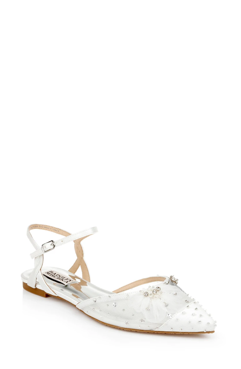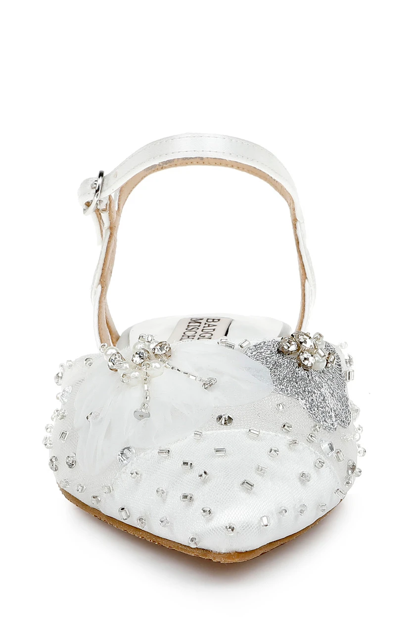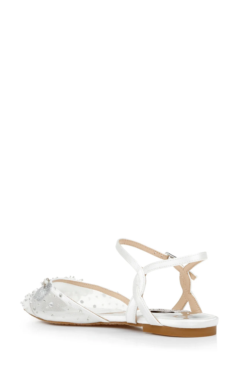 Make the most of warmer weather, and glide into the beautiful glow of dawn in your Karine flats. Light catches the bejeweled mesh fabric with such grace, it’s as if you’re in a dream. Her floral, feminine design takes the wearer back to days of young, summer love.
