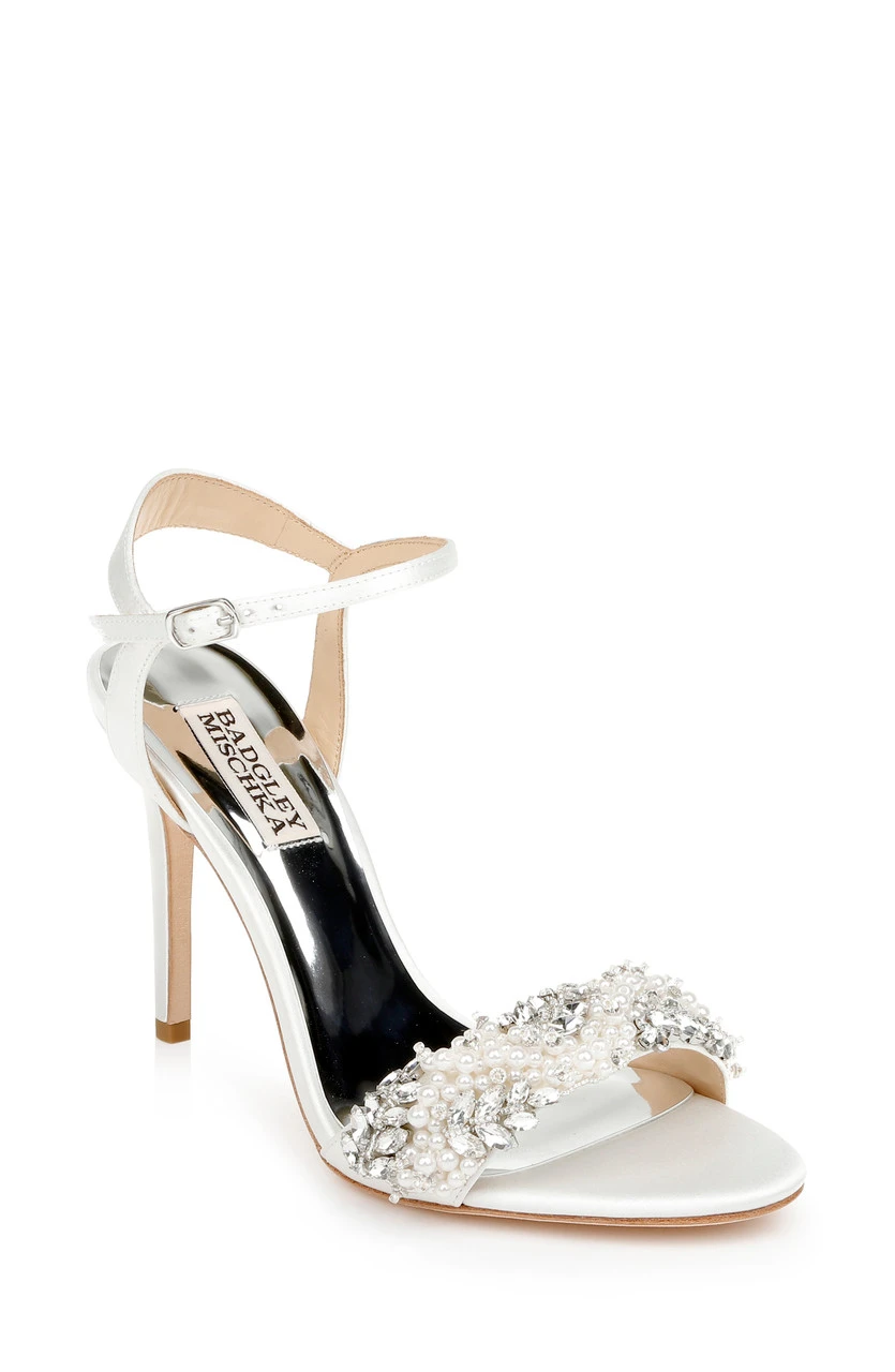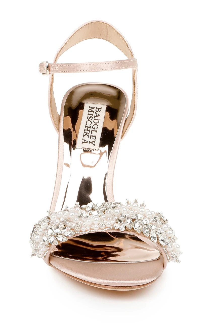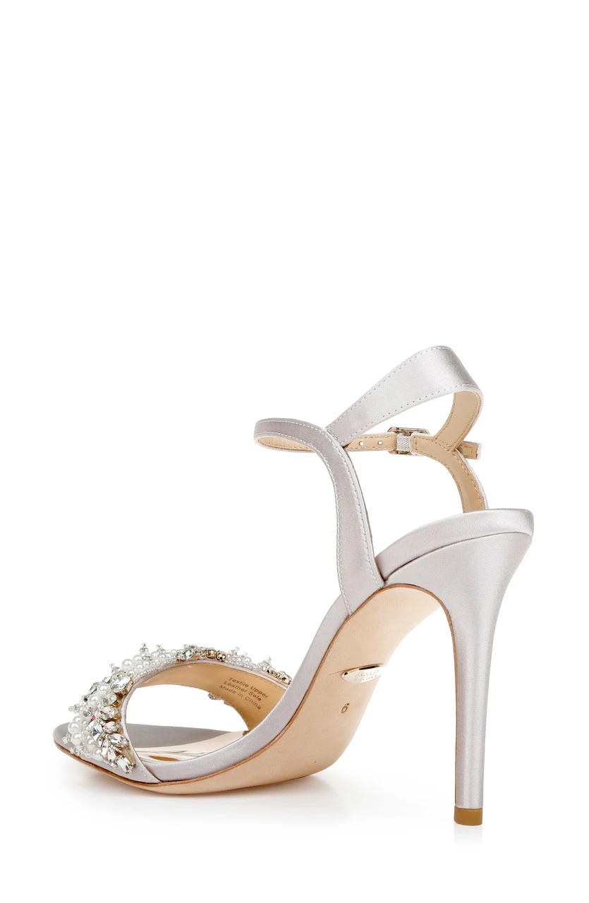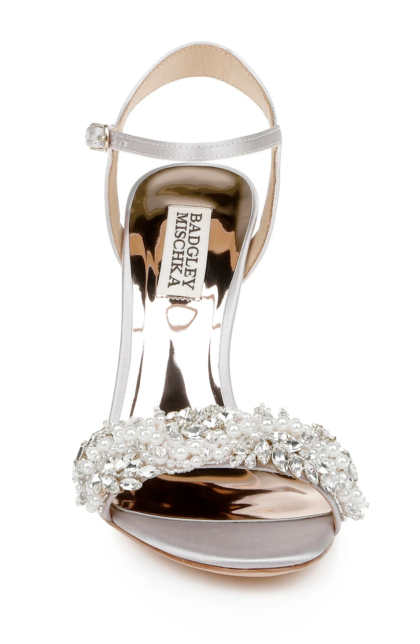 Navette rhinestones and tiny crystals add enchanting detail to this look. Your stride is supported by a back and ankle strap with a delicate buckle fastening. For a similar look with a slightly lower heel, see Kate.