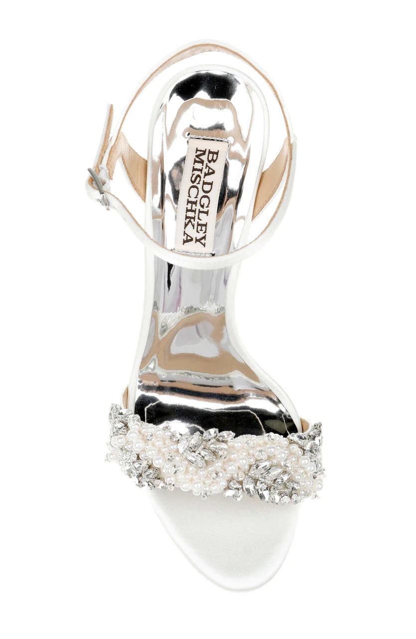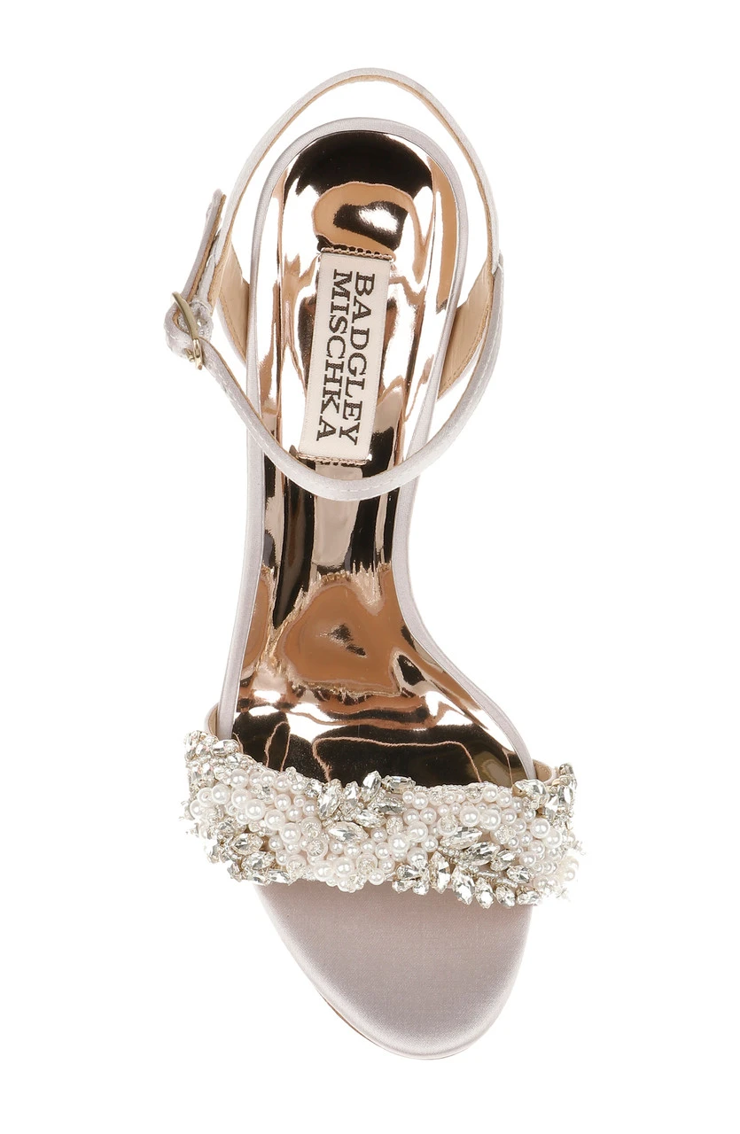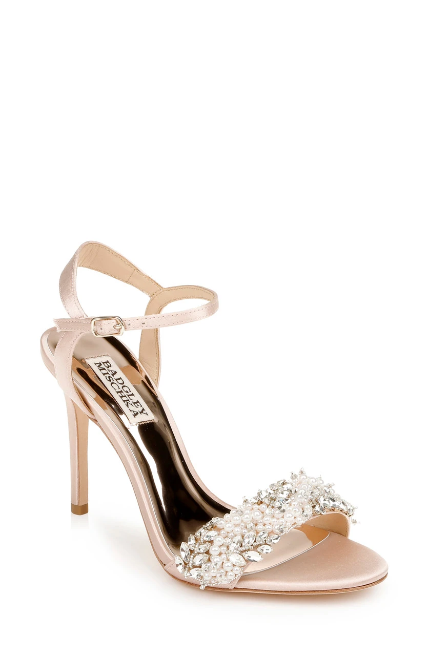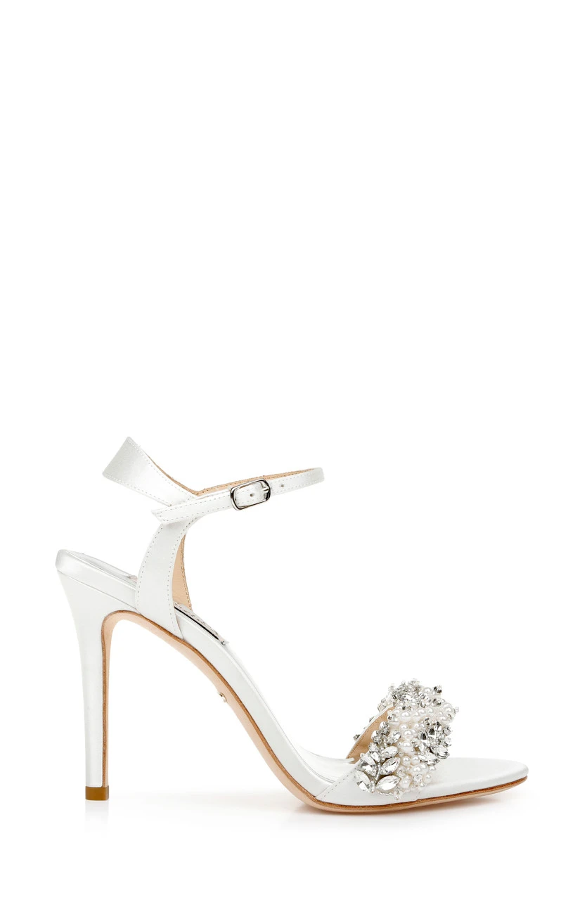 Navette rhinestones and tiny crystals add enchanting detail to this look. Your stride is supported by a back and ankle strap with a delicate buckle fastening. For a similar look with a slightly lower heel, see Kate.