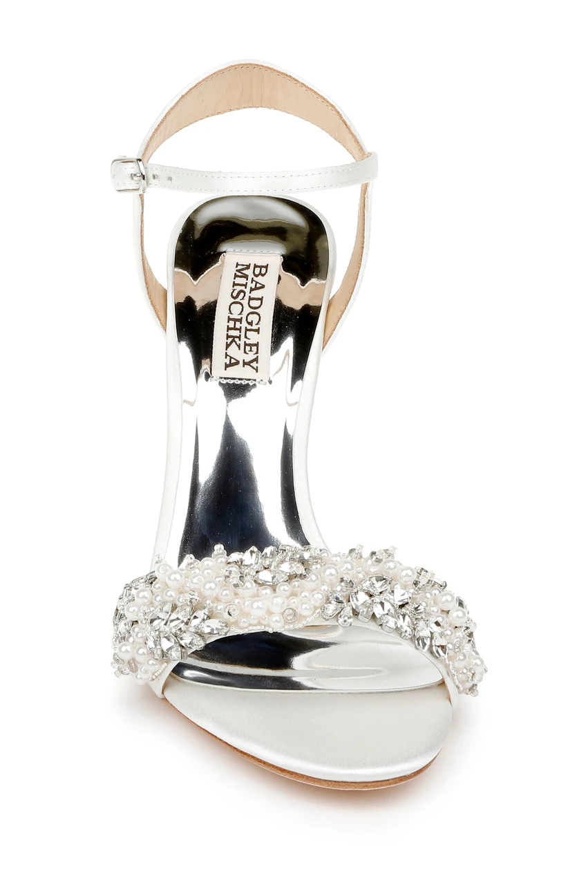 This design celebrates the natural beauty of springtime, with rhinestones forming the shape of leaves across the vamp. Pretty pearls complete this look, with all the beauty of buds ready to blossom.