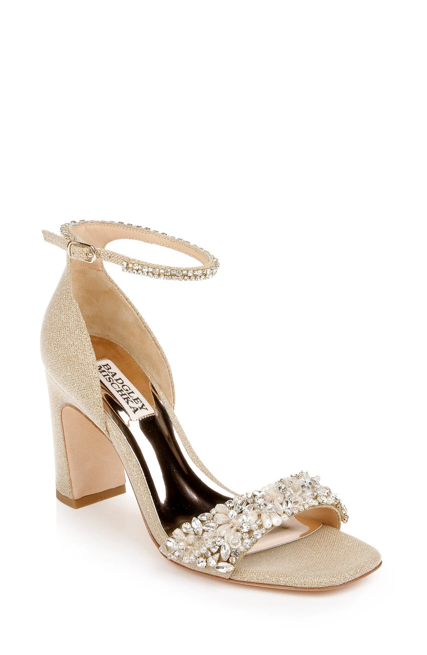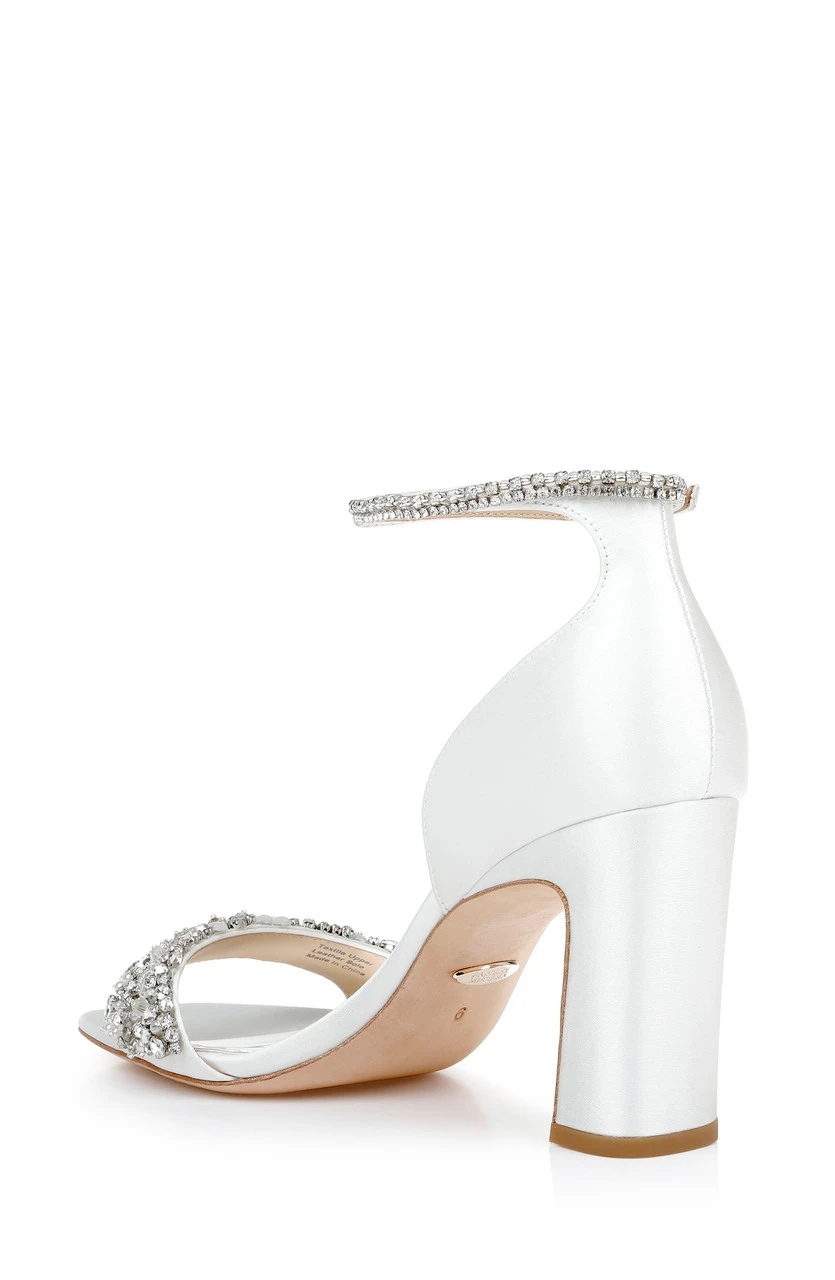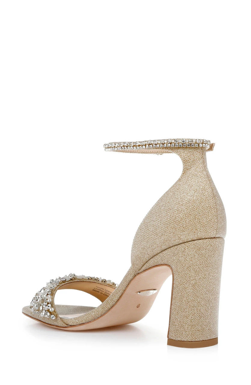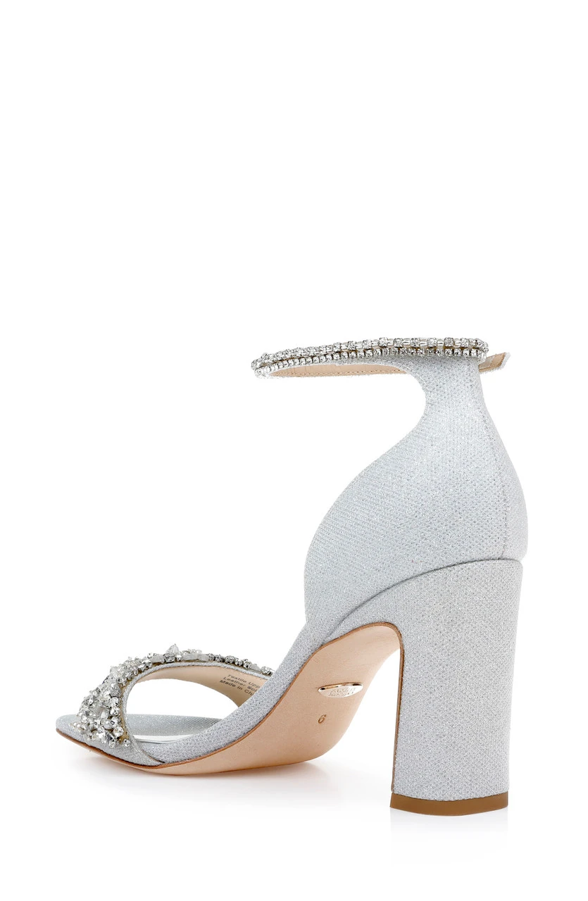 This look features stunning crystals clustered creatively, for a look that shimmers with serendipity. For a similar look with a stiletto heel, see Kaycee.