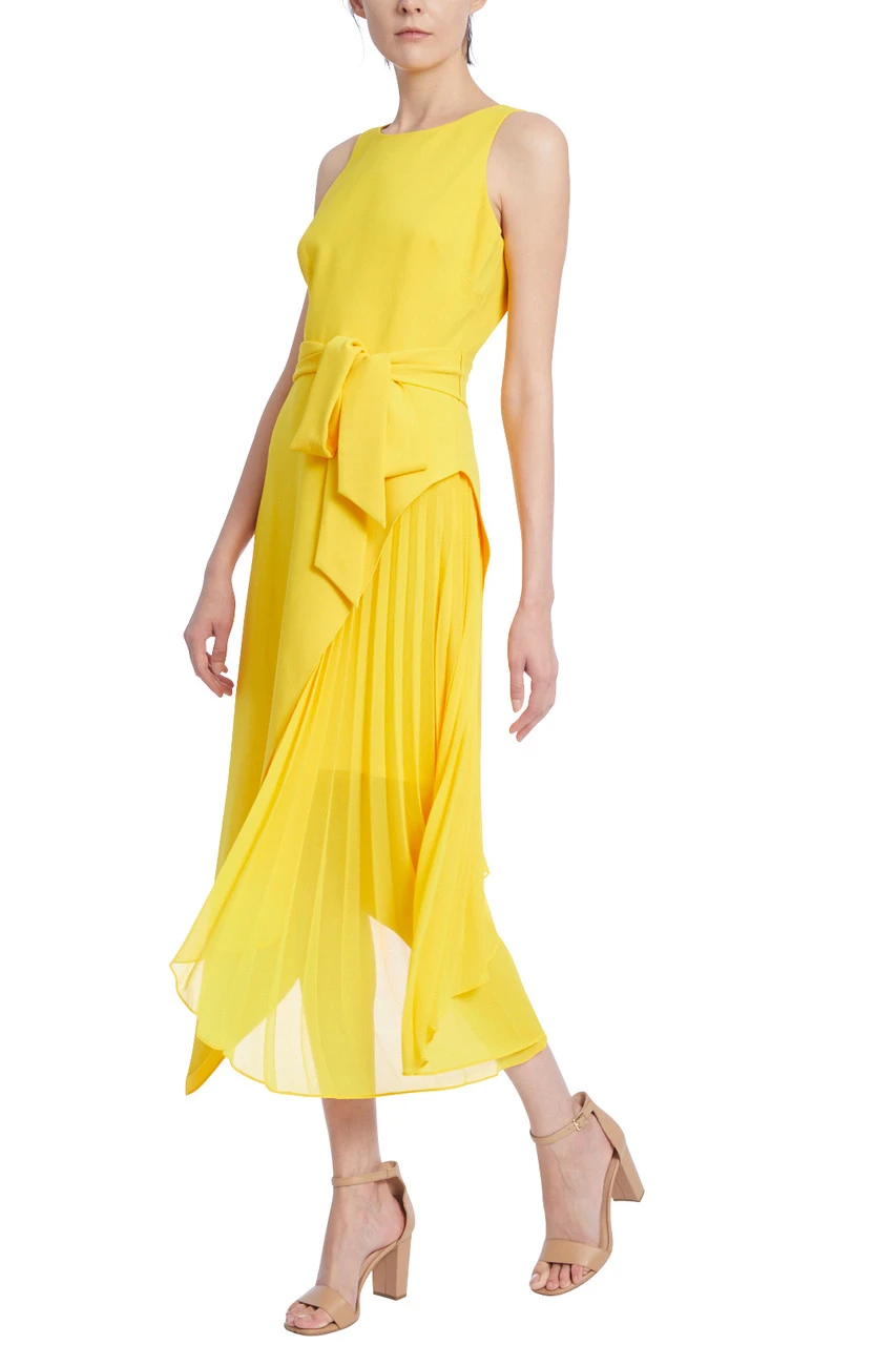 SC9020A | Lemon-Yellow Asymmetrical Wrap Dress