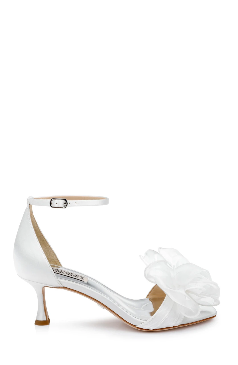 Was there ever a better finishing touch than a beautiful, bold statement bow. Add iconic flair to every look when you slip on these kitten heels, under black-tie gowns and bridal dresses.
