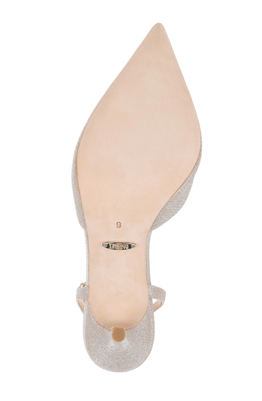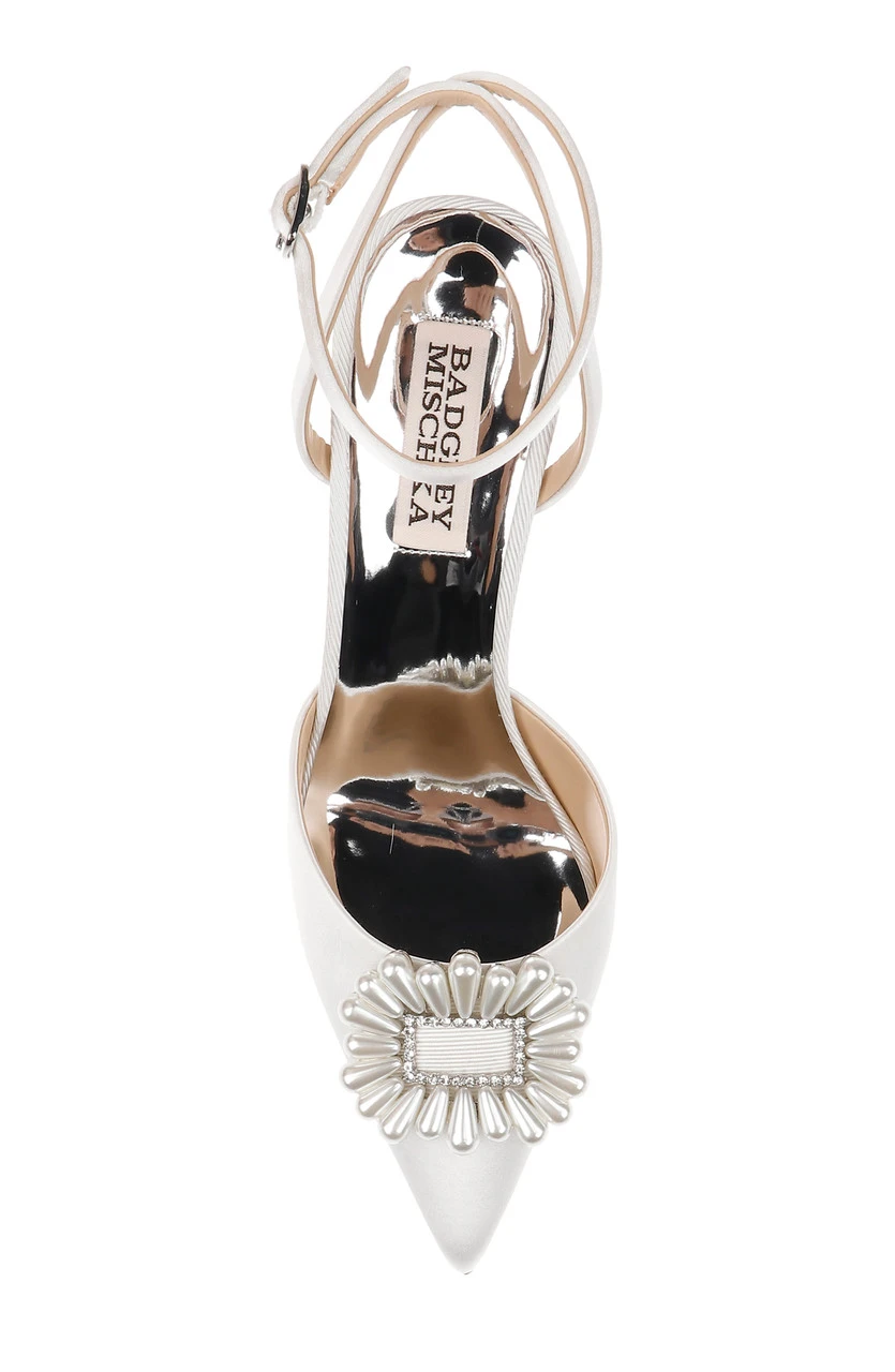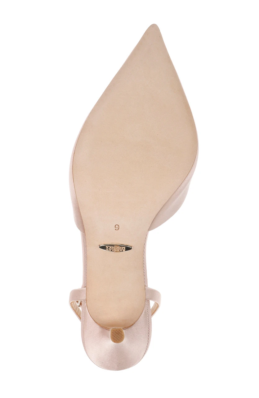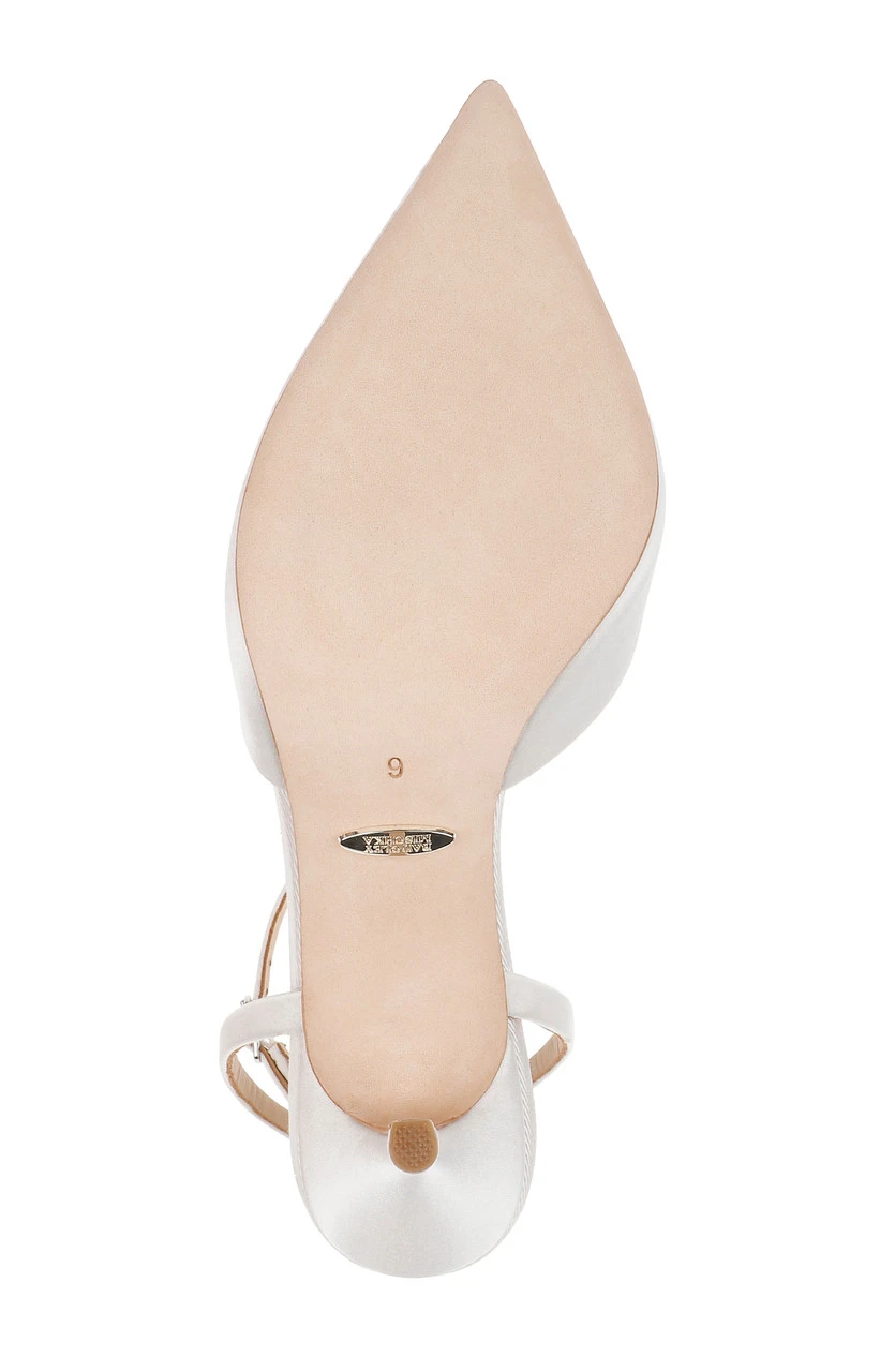 Tap into your femininity with a stiletto that elongates the leg and boosts your confidence at the same time. A pretty pearl adornment sits majestically atop the pointed toe, and delicate straps frame your ankles.
