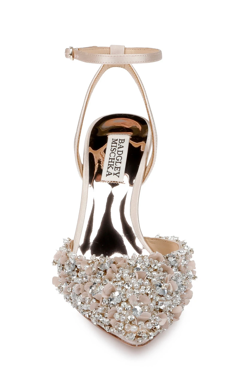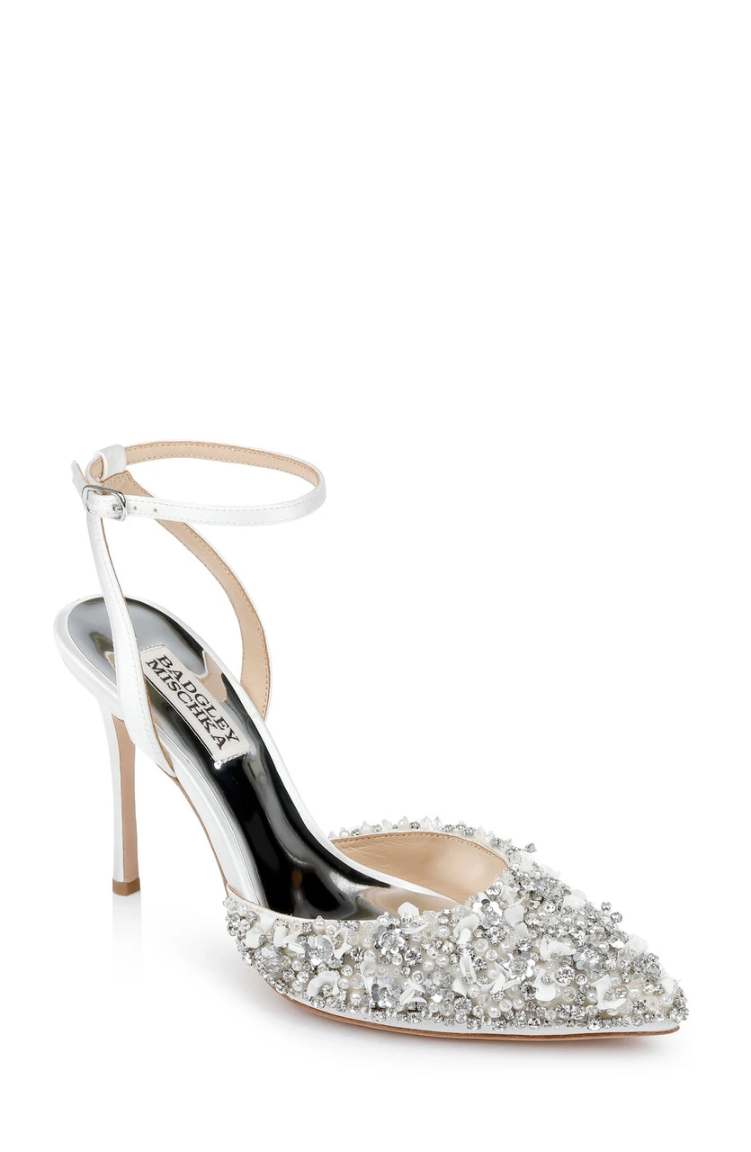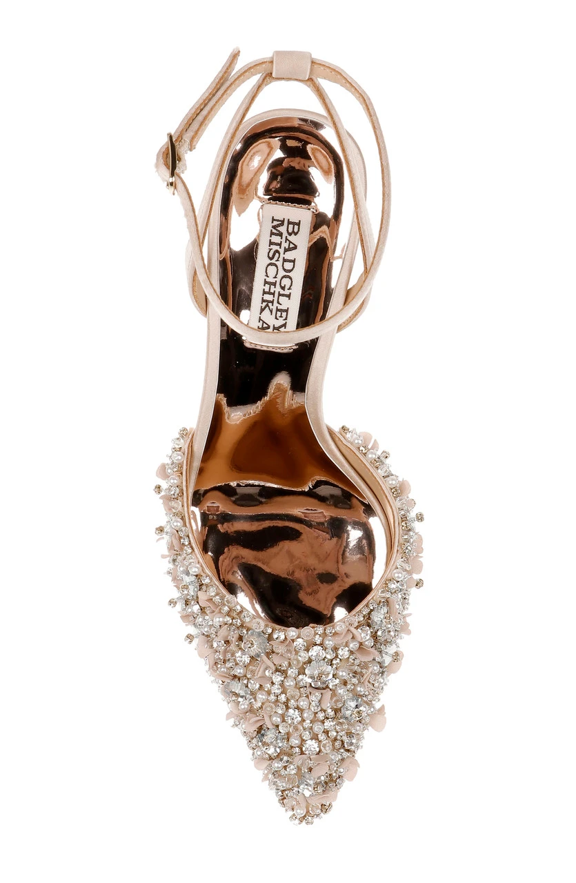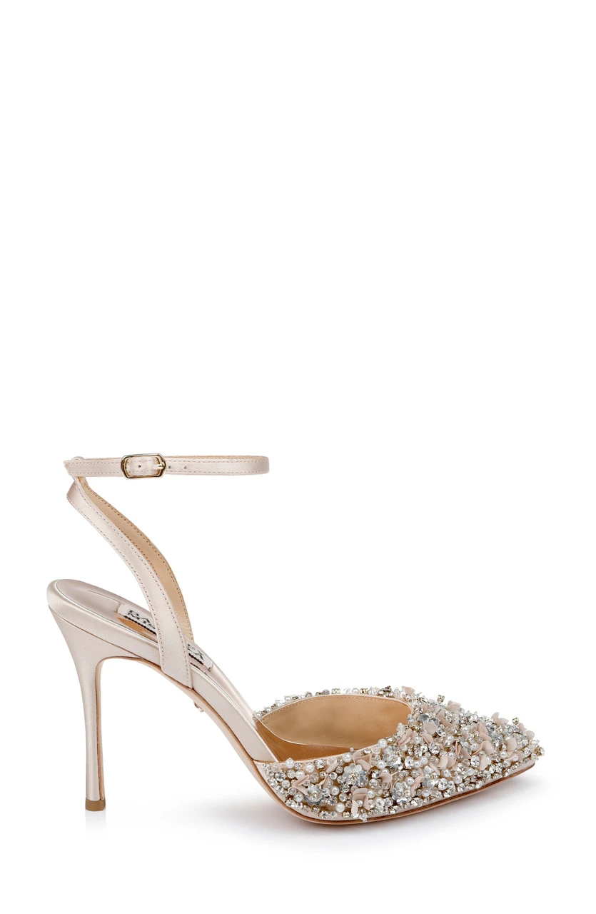 Slip into this shoe and get a taste of pure bliss. Dainty yet secure straps gently wrap around your ankles, while sparkling crystals envelop your feet. These 3 ¾-inch stiletto heels don’t just look fabulous; they’re also comfortable enough to dance until sunrise.