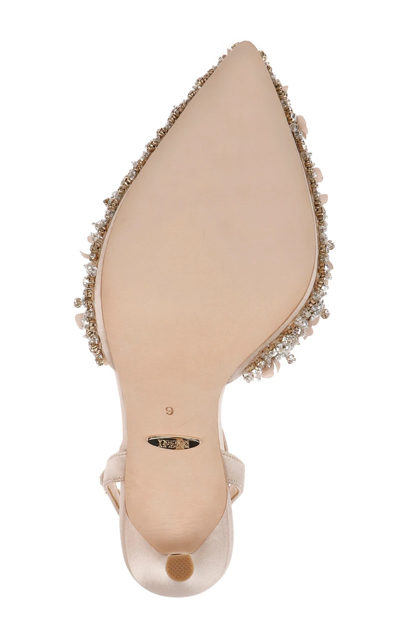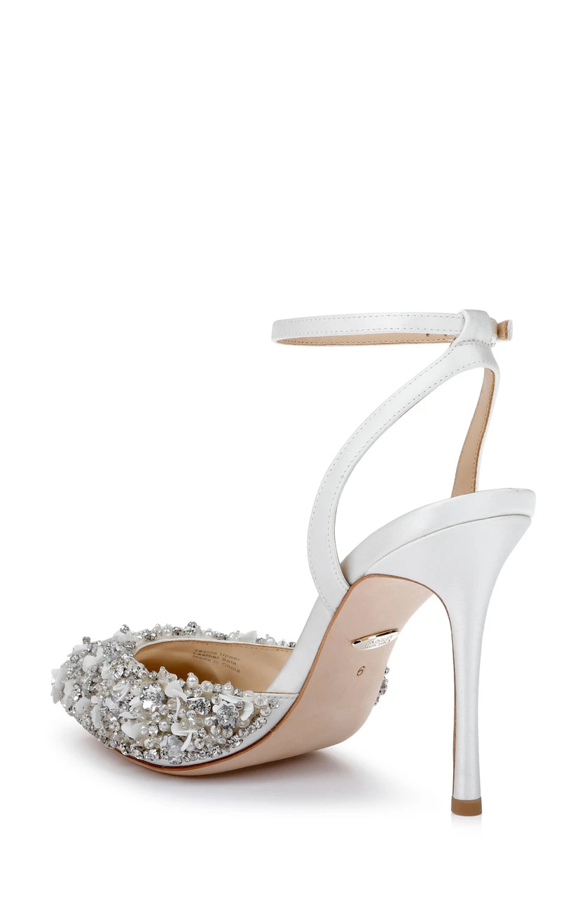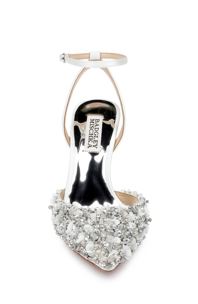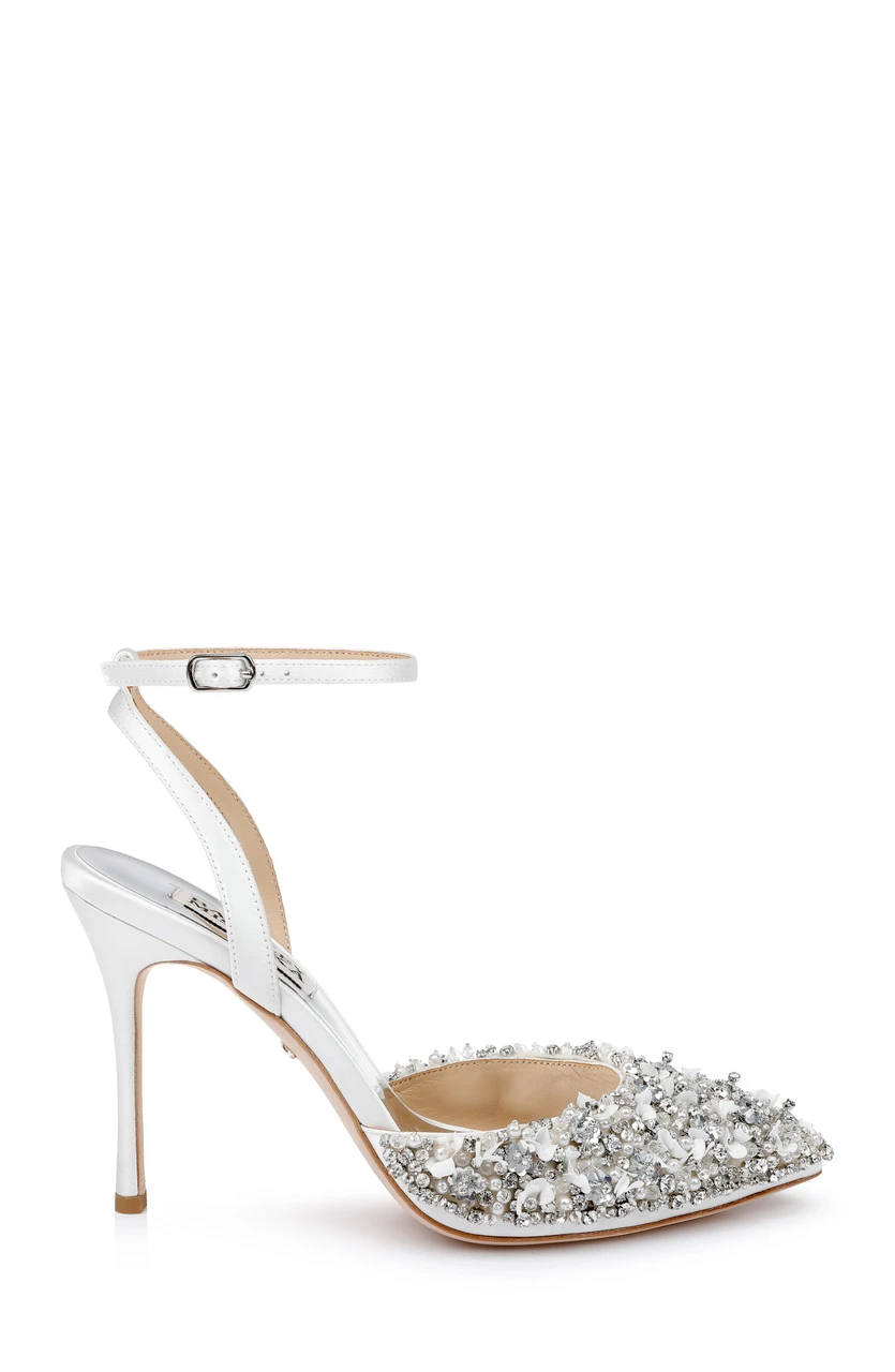 Slip into this shoe and get a taste of pure bliss. Dainty yet secure straps gently wrap around your ankles, while sparkling crystals envelop your feet. These 3 ¾-inch stiletto heels don’t just look fabulous; they’re also comfortable enough to dance until sunrise.