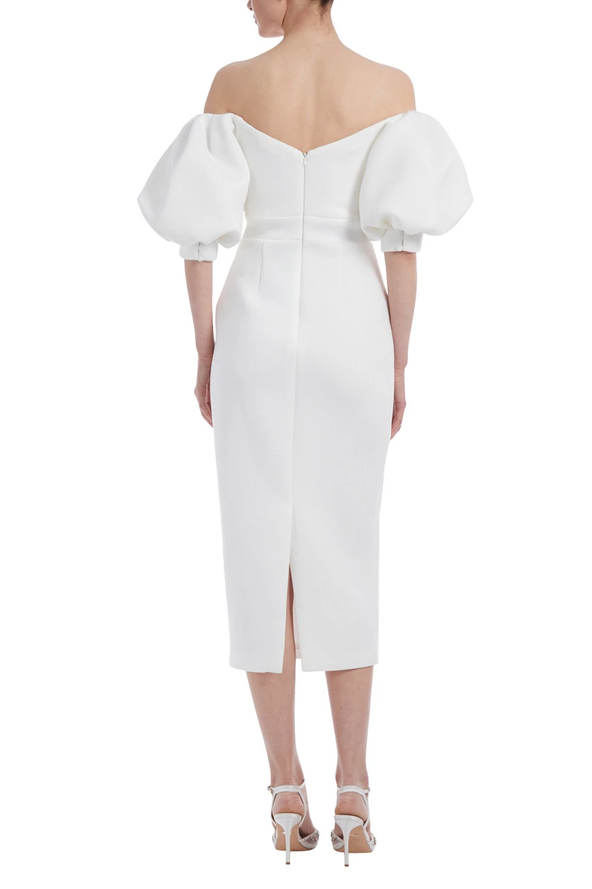 This dress is the perfect combination of classic and modern style. The strapless sheath silhouette is timeless, but the puffy off-the-shoulder sleeves add a playful twist. You’ll love the way this dress makes you feel—alluring, confident, and ready to take on whatever life throws at you!