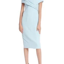 The Pleated Faux Shoulder Wrap Sheath Gown is a simple and elegant sheath dress that features wide short sleeves, a faux pleated wrap in the front, and a slit in back. Made of stretch crepe, it is a versatile piece that’ll flatter your figure and add elegance to your wardrobe.