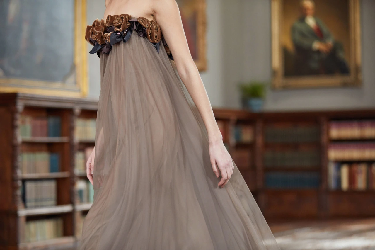Poetry intertwines with fashion, in sepia tones designed for making memories. This angelic-looking gown is designed for black-tie events and opulent parties where you intend to stand out as your most authentic, beautiful self.