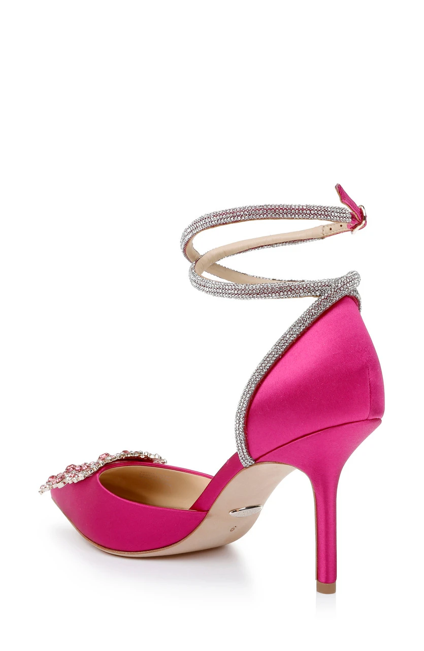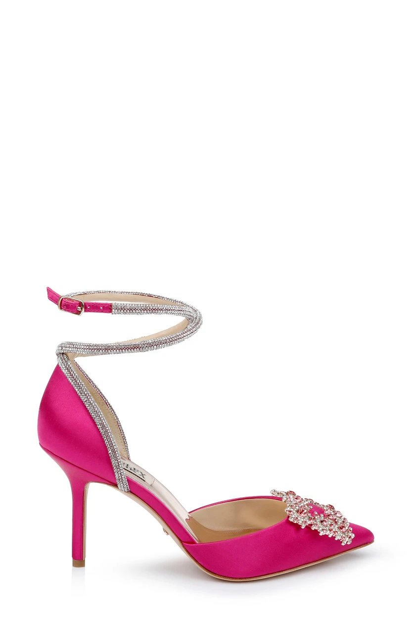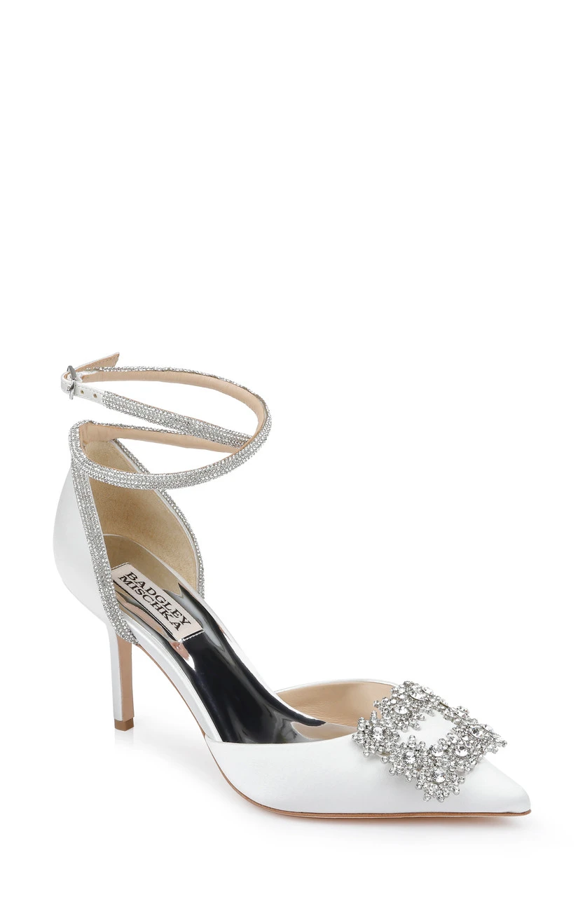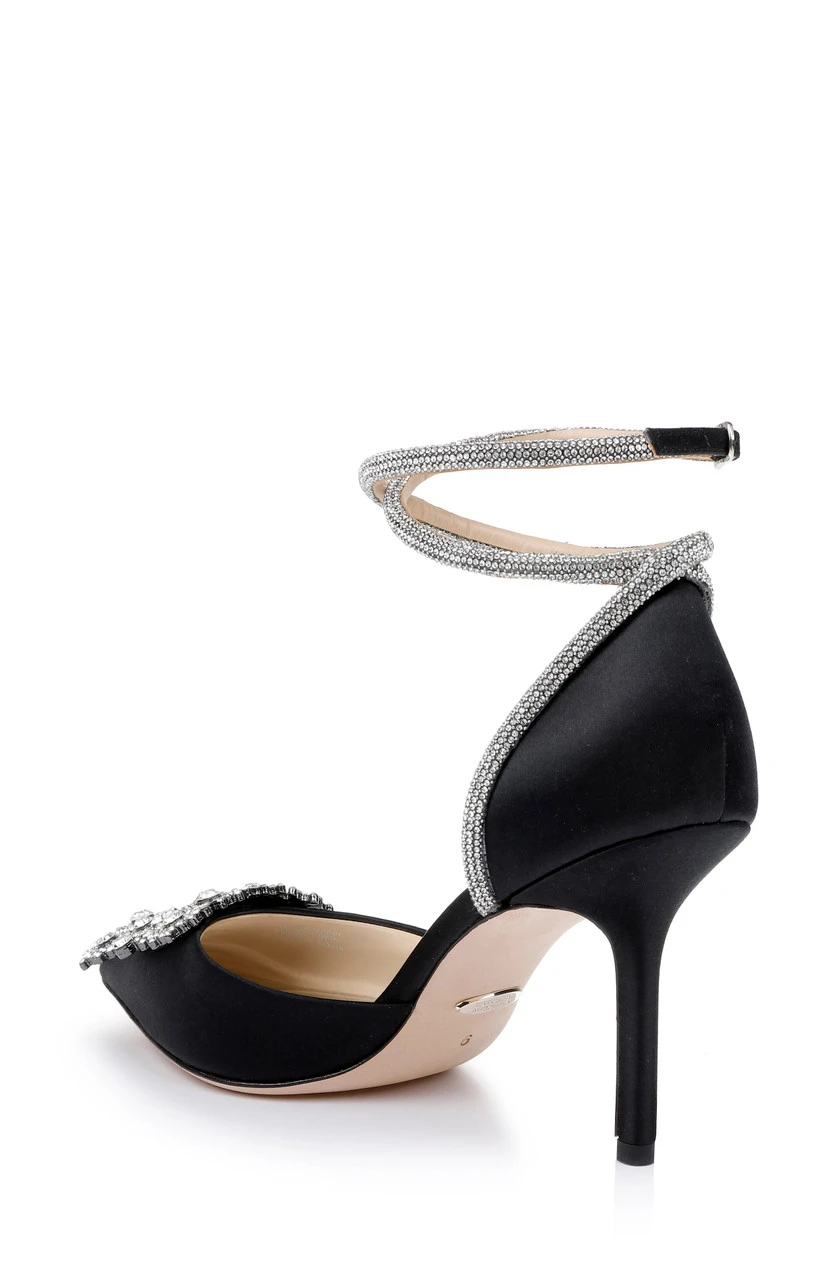 Like a Victorian Queen, the Saint is full of riches. A large square-shaped buckle serves as the crown of these heels as a rhinestone encrusted ankle strap wraps around your ankle elegantly. There is so much to look at with Saint, you have to take it all in!