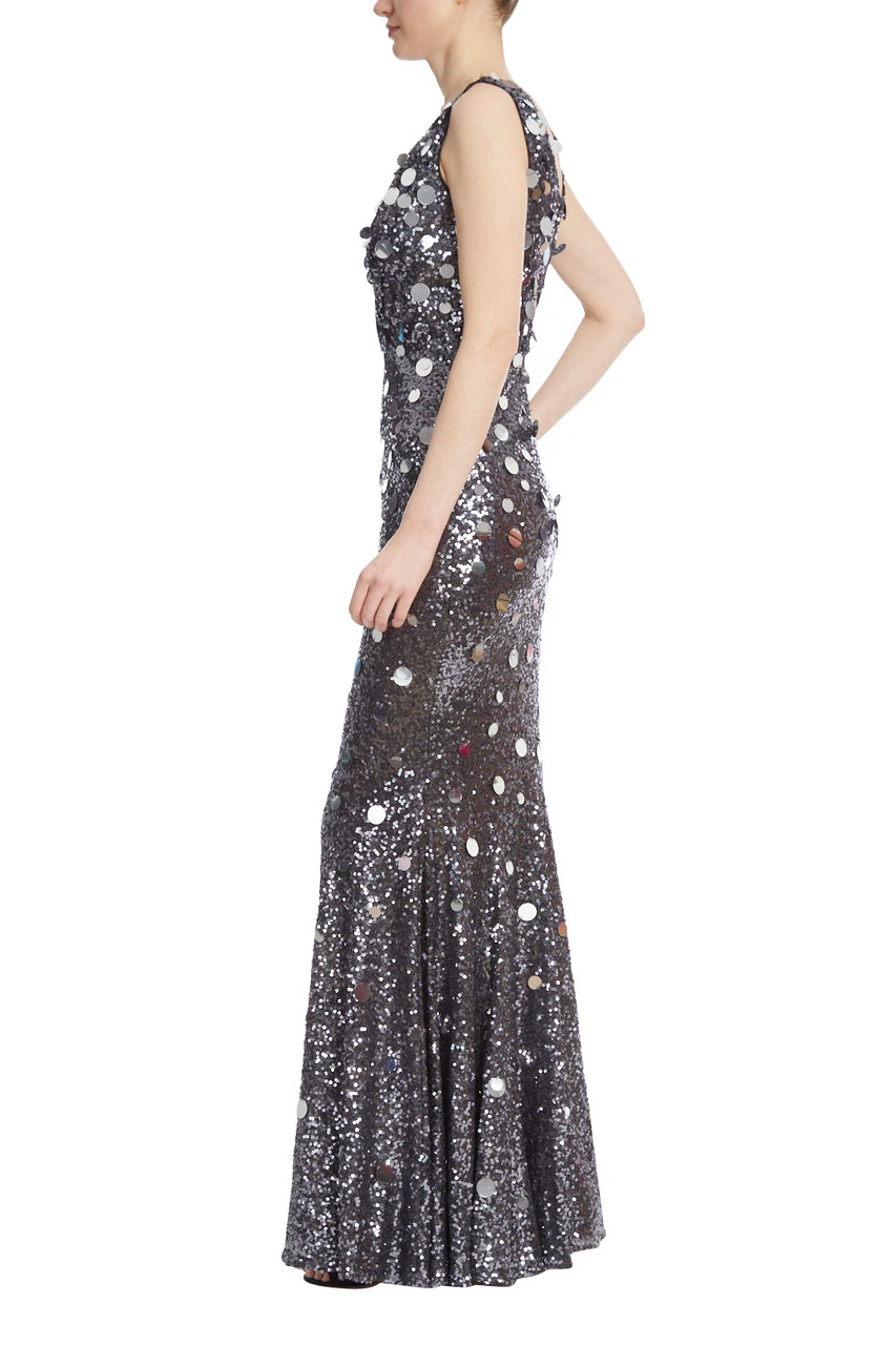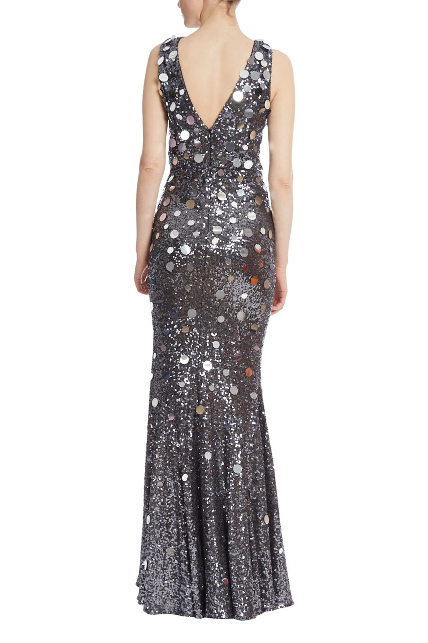 This dress features a deep V-neckline and sleeveless design, which are perfect for showing off your assets. The mermaid silhouette hugs your hips and gives you an hourglass figure, but the charcoal sequins and larger paillettes give it a little extra bit of sparkle that makes it stand out from all other dresses.