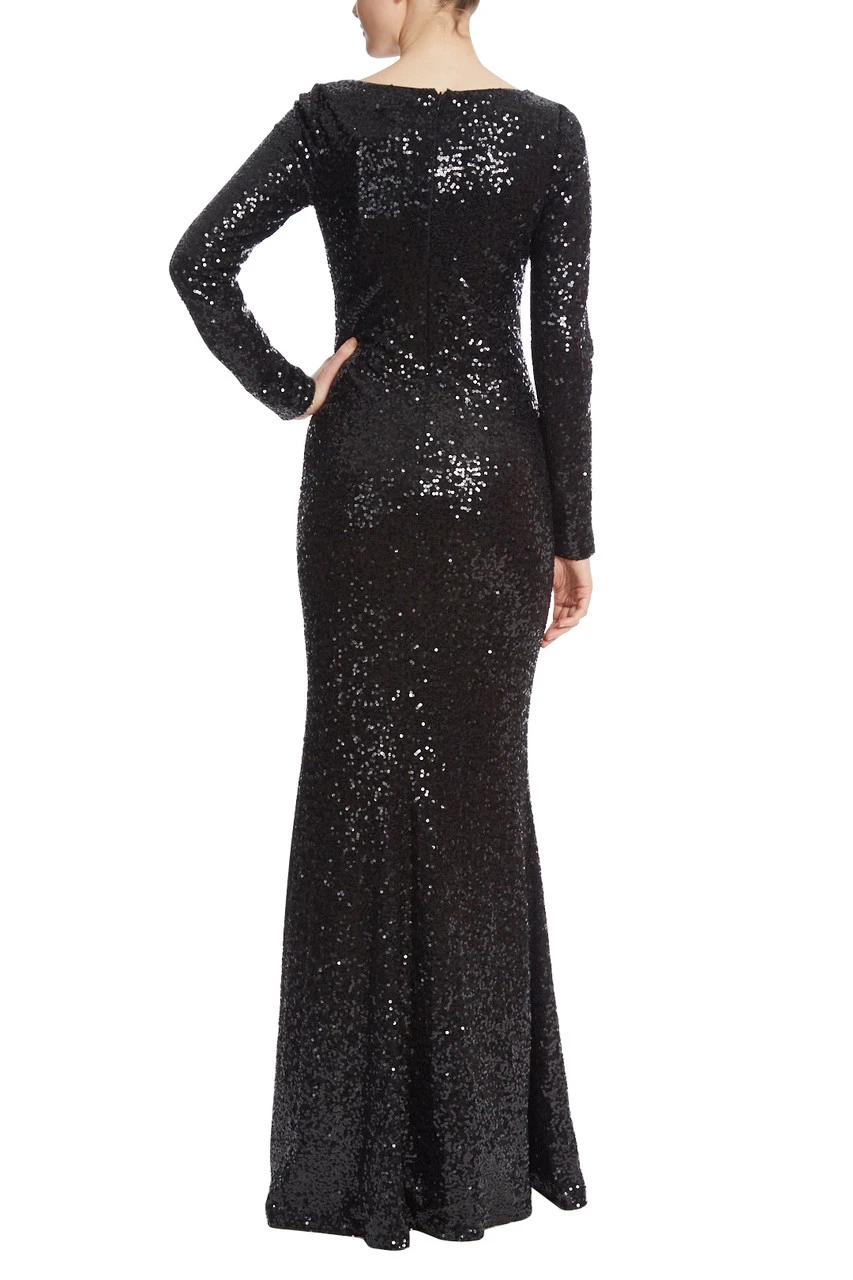 EG3822 | Sequin Long sleeve Gown With Bow Brooches