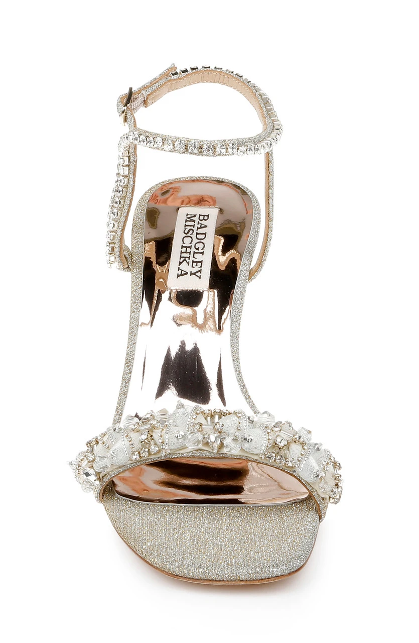 Tanika proves that crystal sparkle and a feminine shaped heel can transform your look. An ornately looped ankle strap with a delicate buckle, a stunning vamp, and a wearable heel make this look versatile and stunning. For a similar look with a low block heel, see Tanessa. You could also take your look to new heights, with the bold block or striking stiletto heel offered by Tanisha and Taryn.