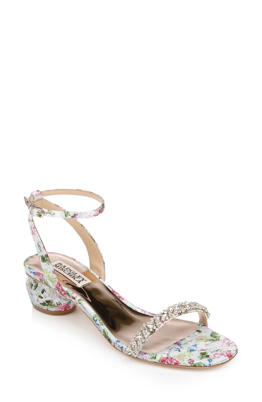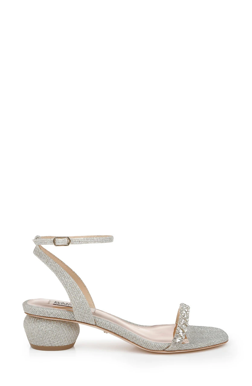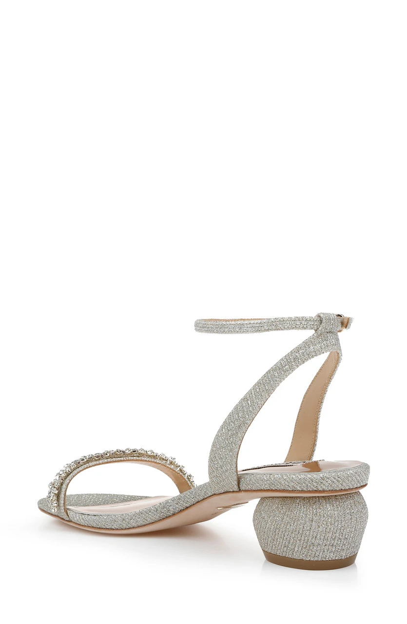 A chunky low heel gives you just enough of a lift to aid your posture and give you a sense of poise. A sling back, delicate buckled ankle strap, and crystal-adorned vamp complete this look.