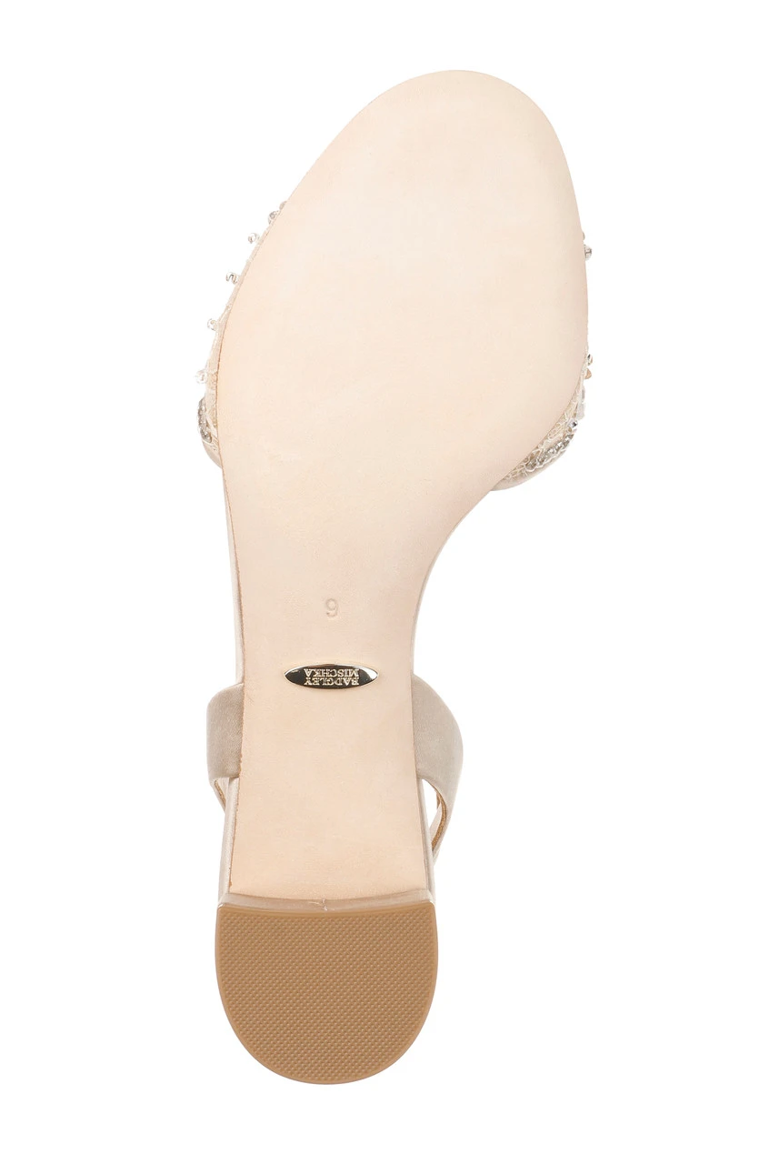 This look is versatile with a block heel that lifts you a modest 2 inches. Ankle straps keep your new favorite shoes securely fastened. A beautifully adorned nylon mesh vamp is the highlight of this piece. See Tayten for a similar look with a block heel just over 3 inches, or Tazana for a 3 Âľ inch high stiletto.