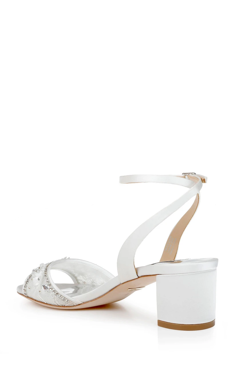 Slip on this silk satin shoe designed for comfortable poise. This look is a celebration of femininity and elegance. This pretty style is perfect for brides and bridal party members, as well as garden parties in the summer sun.