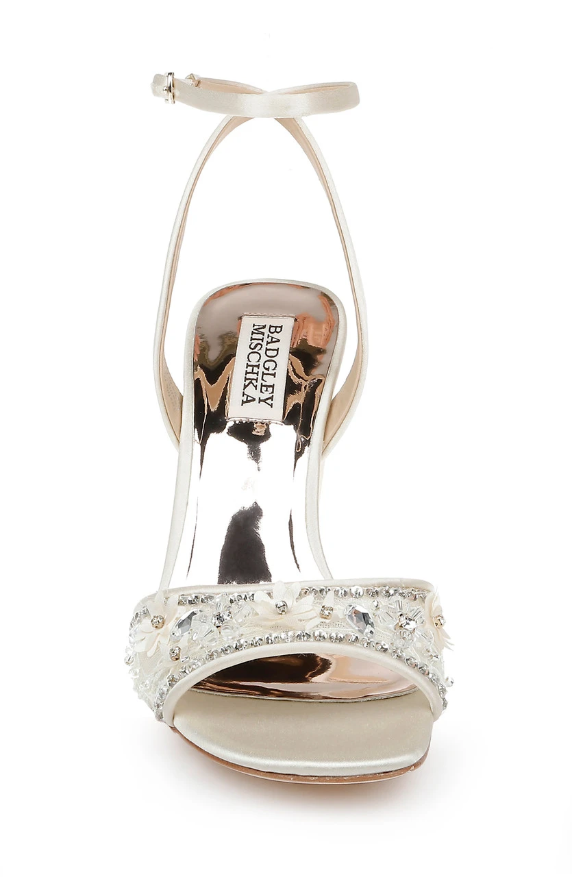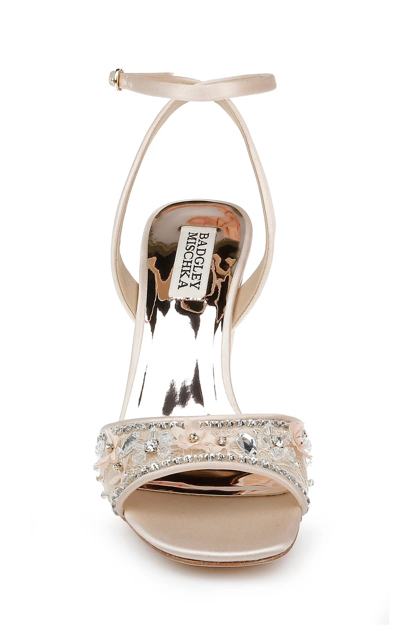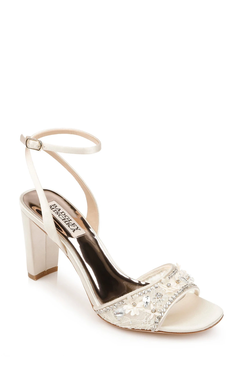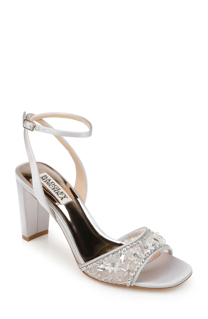 Soft hues, a delicate ankle strap, and ornate nylon mesh create a piece to treasure. Silky satin appeals to the senses. Embrace this style, or browse Taylin for a low block heel, and Tazana for a stiletto with similar appeal.
