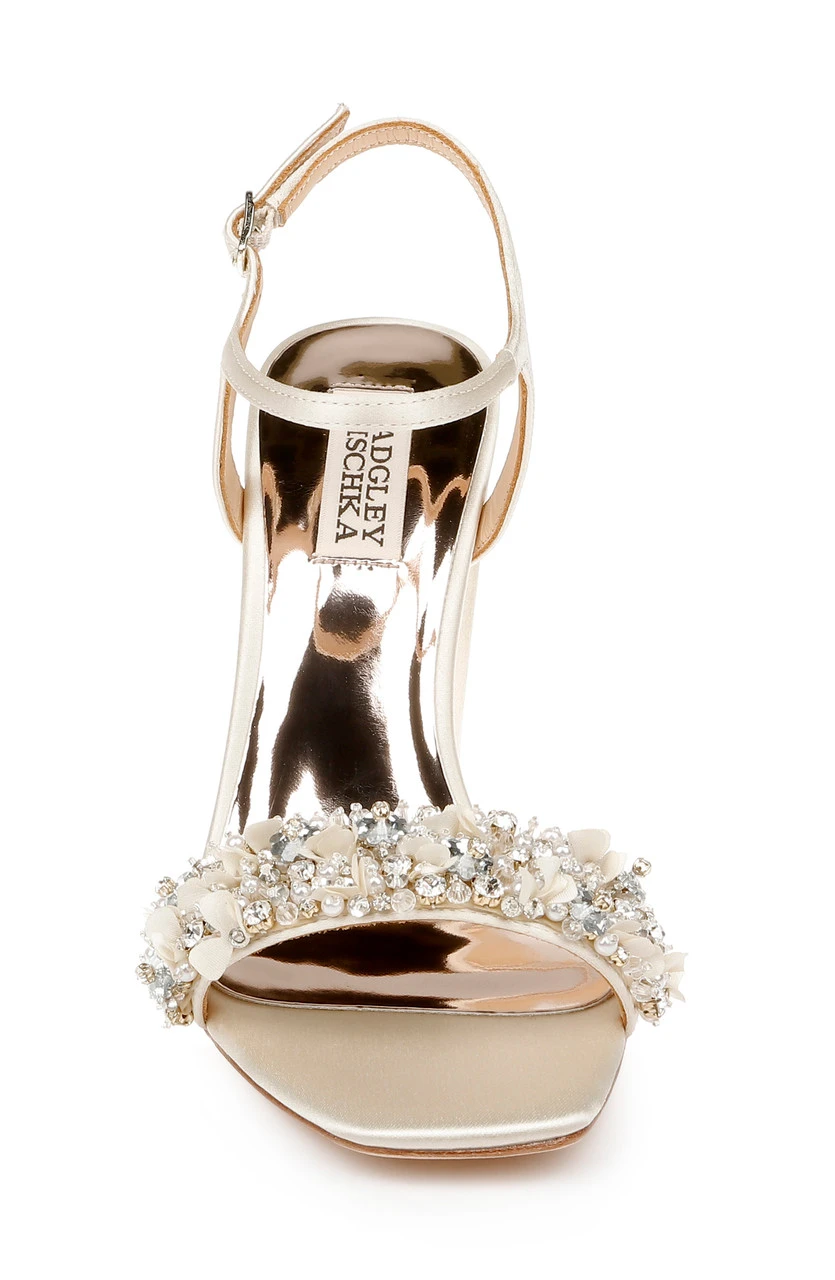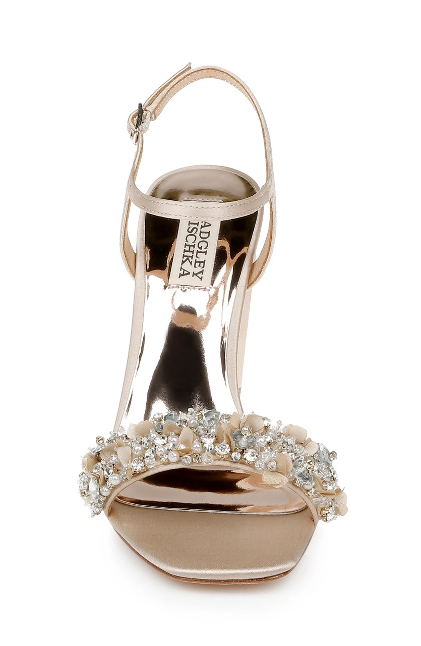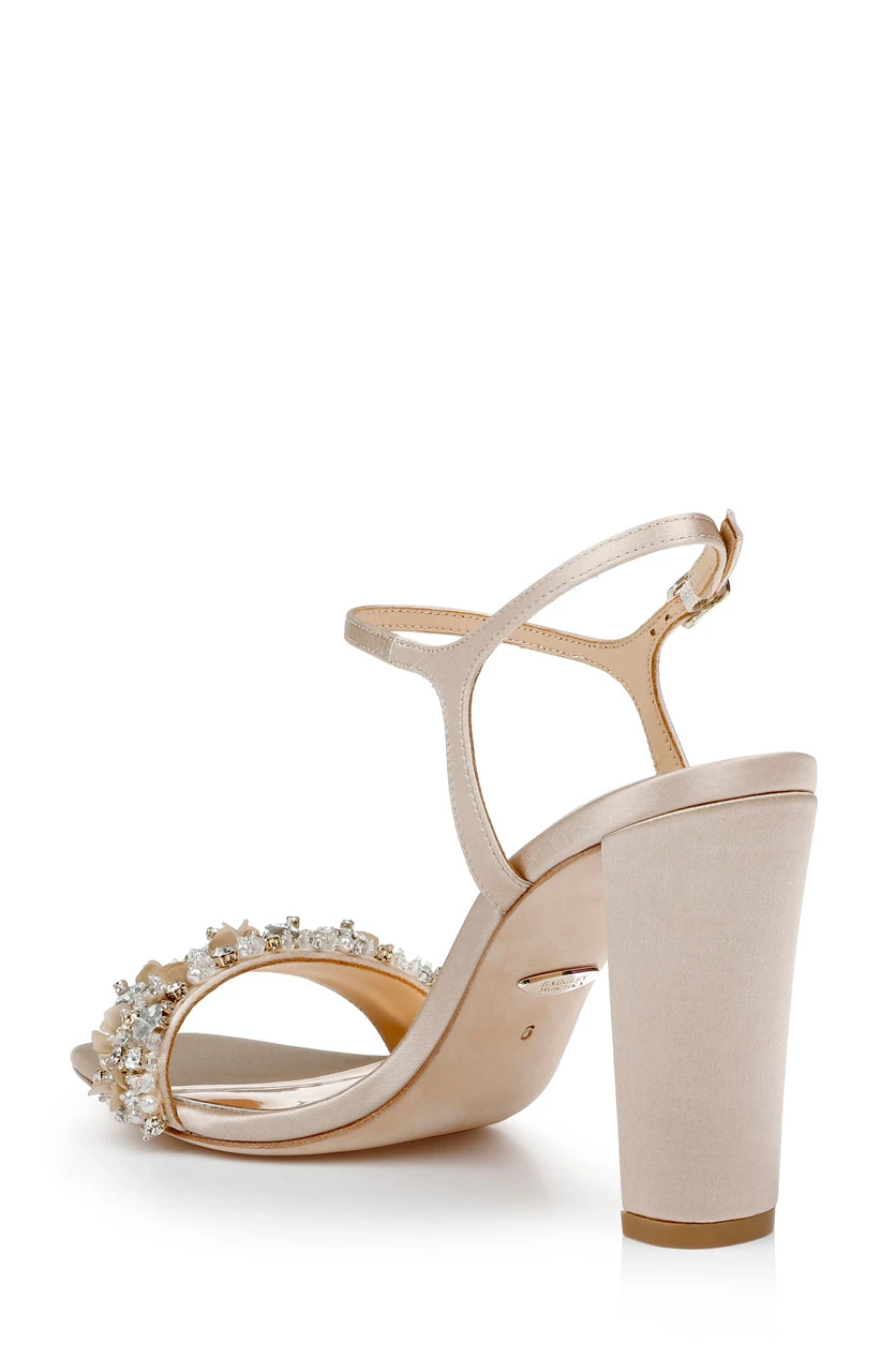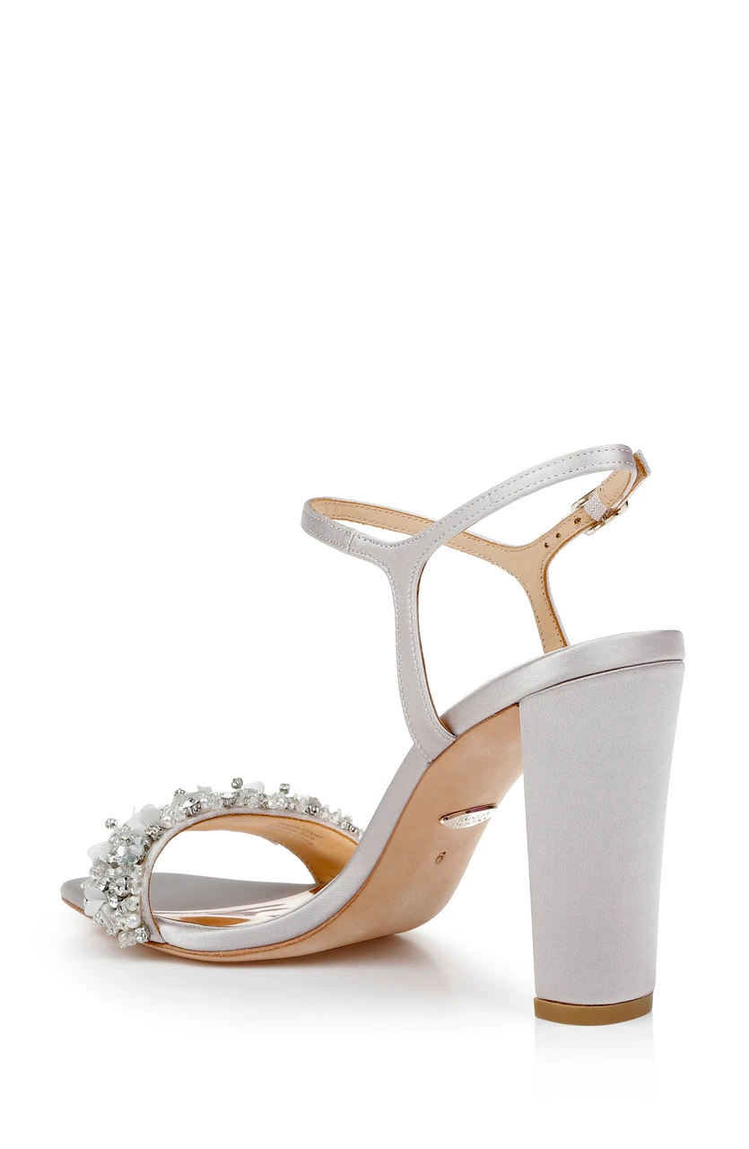 Teenie brings stunning glamour to every occasion with a 3 ½ inch block heel and deep arch. All eyes are on you in delicate silk satin. Take a look at Teela for a versatile version of this style with a lower block heel.