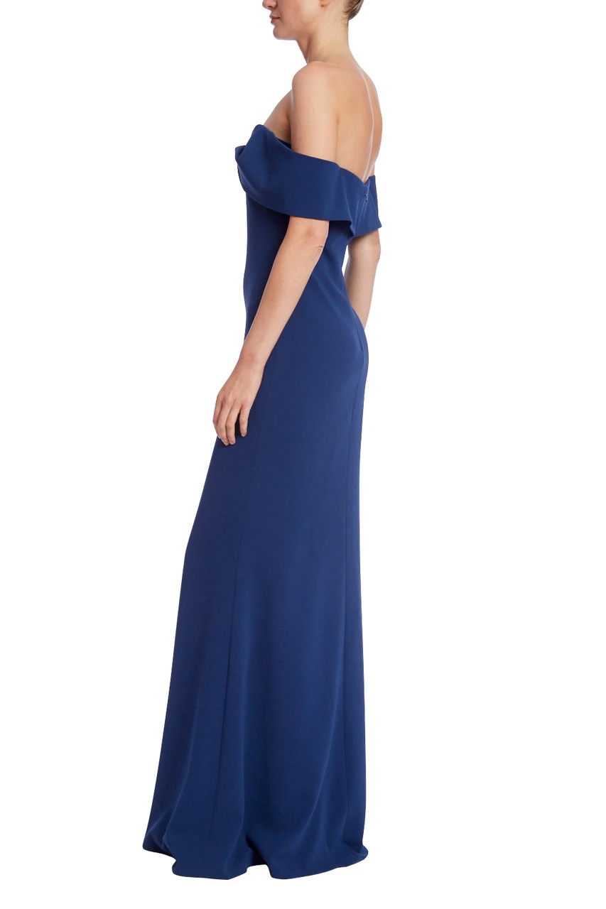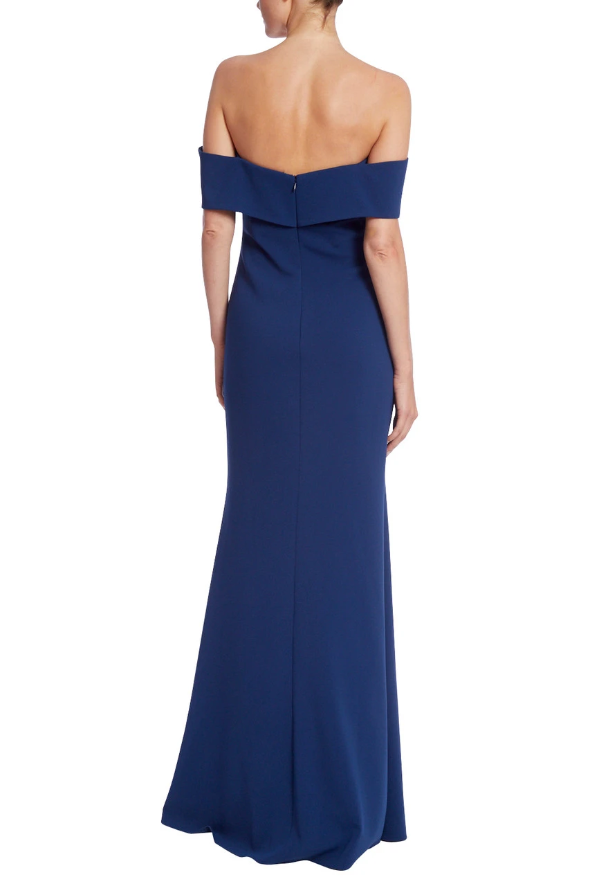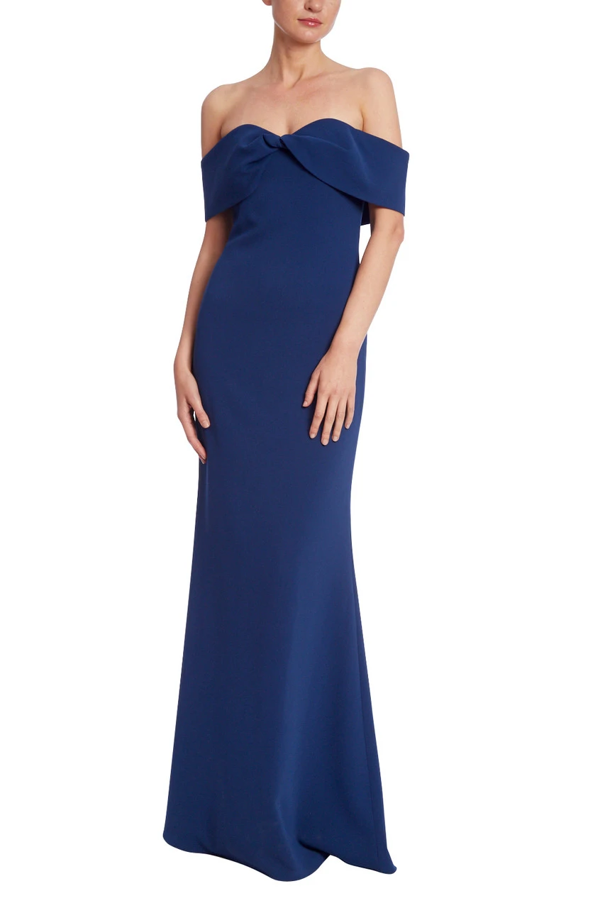 Add a sexy ‘twist’ to your next evening out with the Twisted Off Shoulder Gown. The twisted “bow”neckline and off-the-shoulder sleeves combine to create a silhouette that is sure to make any heart flutter. Completed with a fitted bodice and a column skirt that give you all the curves that you desire, this gown is perfect for making an entrance at any event. Simply pair with a pair of BM stilettos and statement earrings to complete the look, and you’ll be ready for anything!