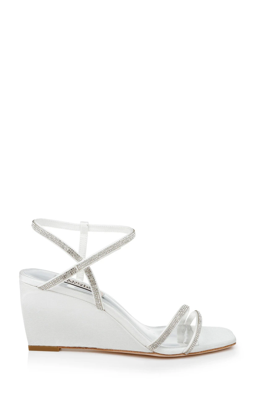 Pale neutrals, crisscross straps and a vacation-ready wedge heel make this look a summer favorite