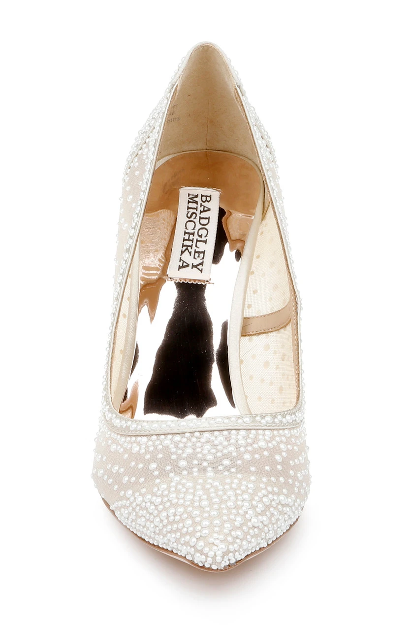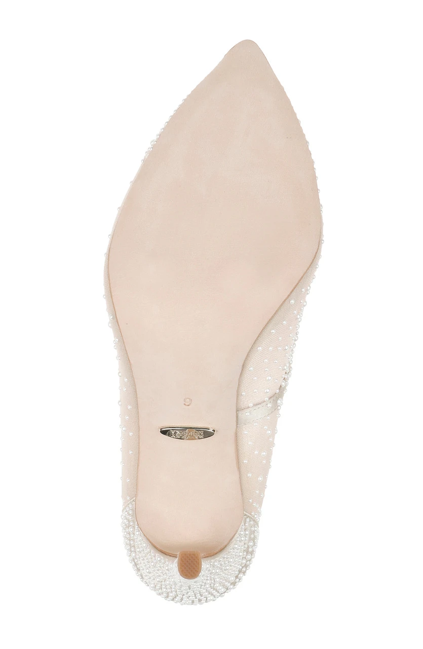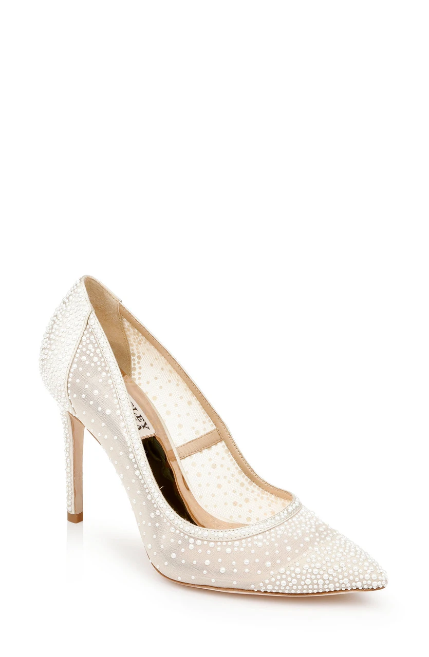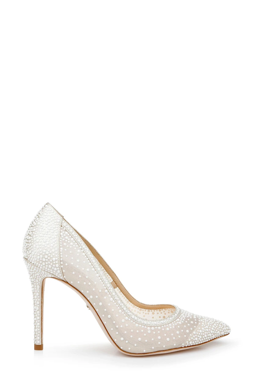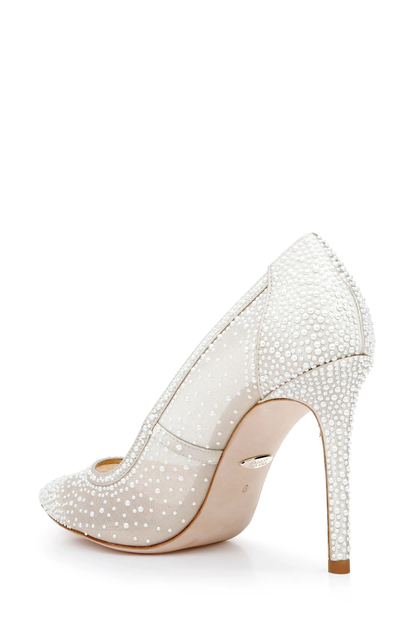 This stiletto heel elevates you with poise, height, and posture. A pointed toe and pearls ensure your look is perfectly on point.