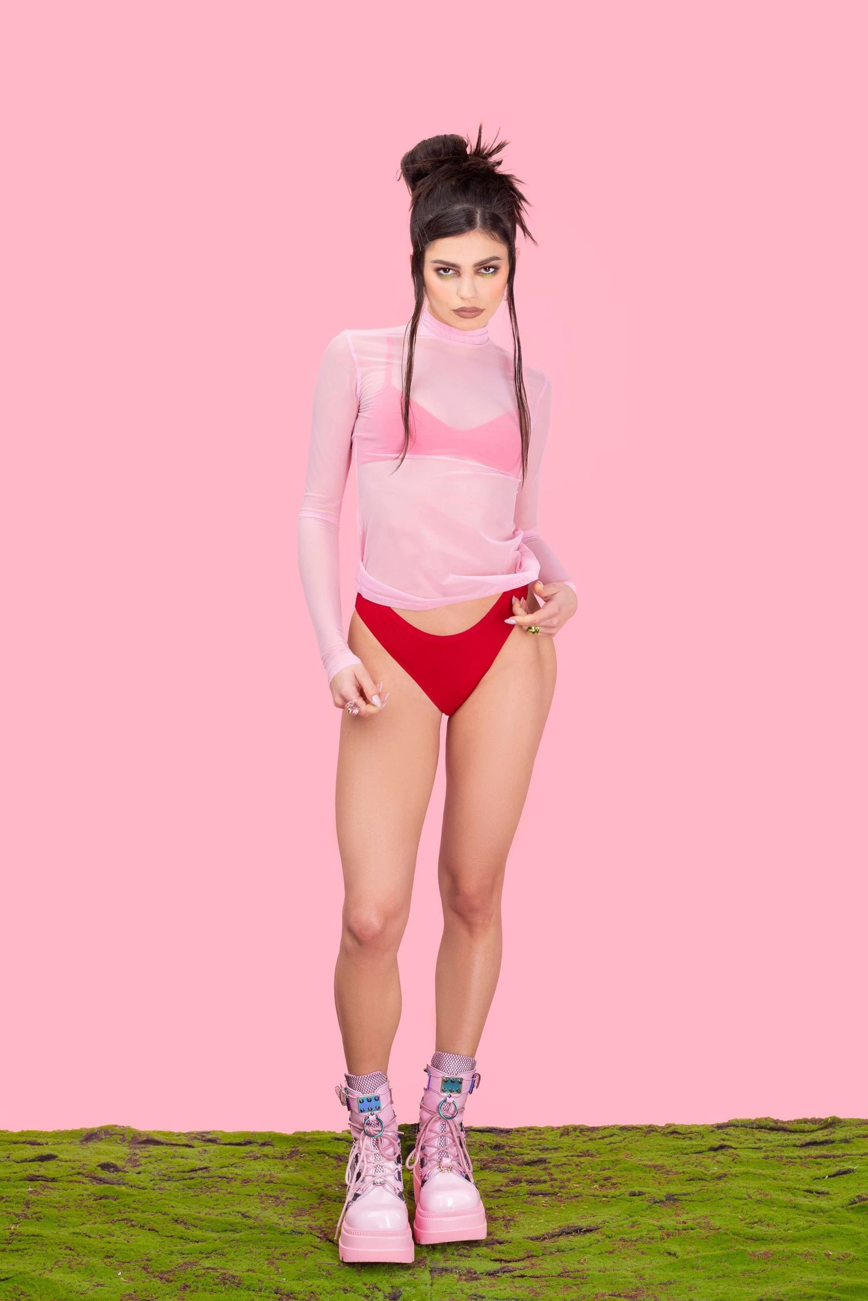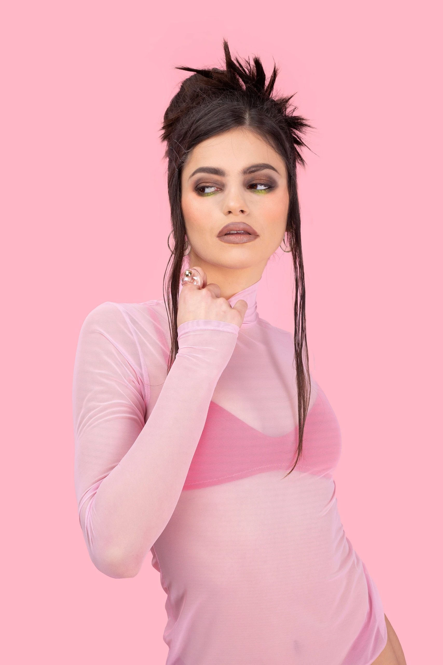 Badinka Tempt Me Pink Mesh Highneck Top