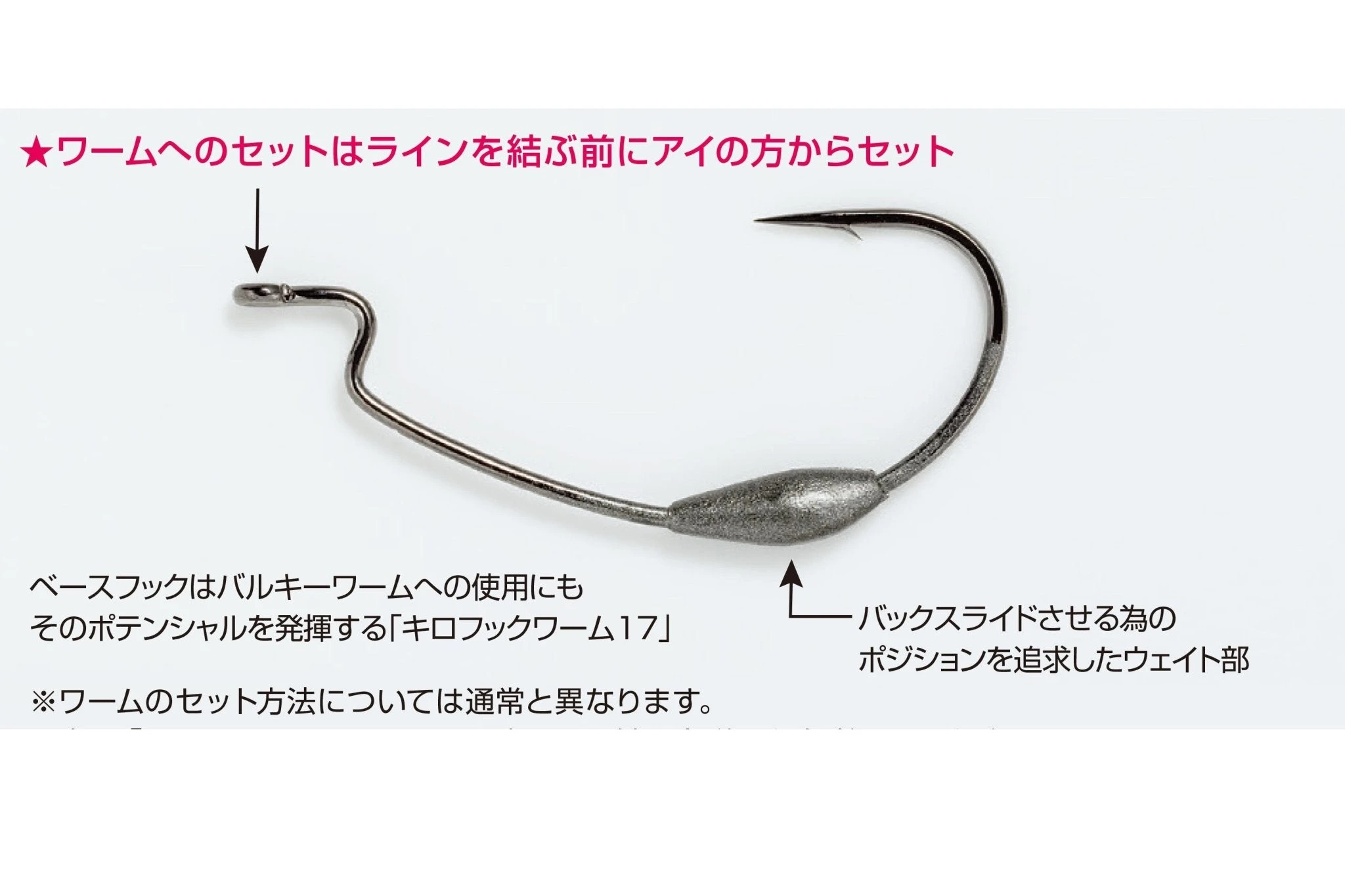 Decoy – Worm 103 Back Switcher is a tuned hook with a weight balance that draws out the performance of a high specific gravity backslide worm to the fullest, and makes it possible for normal worms that are difficult to backslide and kickback. Use the back slide to reach the innermost part of the cover at once, and use the kickback fixed point action to instantly use the mouth of the decabas. In terms of hooking performance, even in bulky worms where hooking is not good, the hook point is always upward, the point does not shake, and the response is more than I imagined. The base hook is “Kilohook Worm 17”, which has a good track record and is highly evaluated when used in bulky worms.