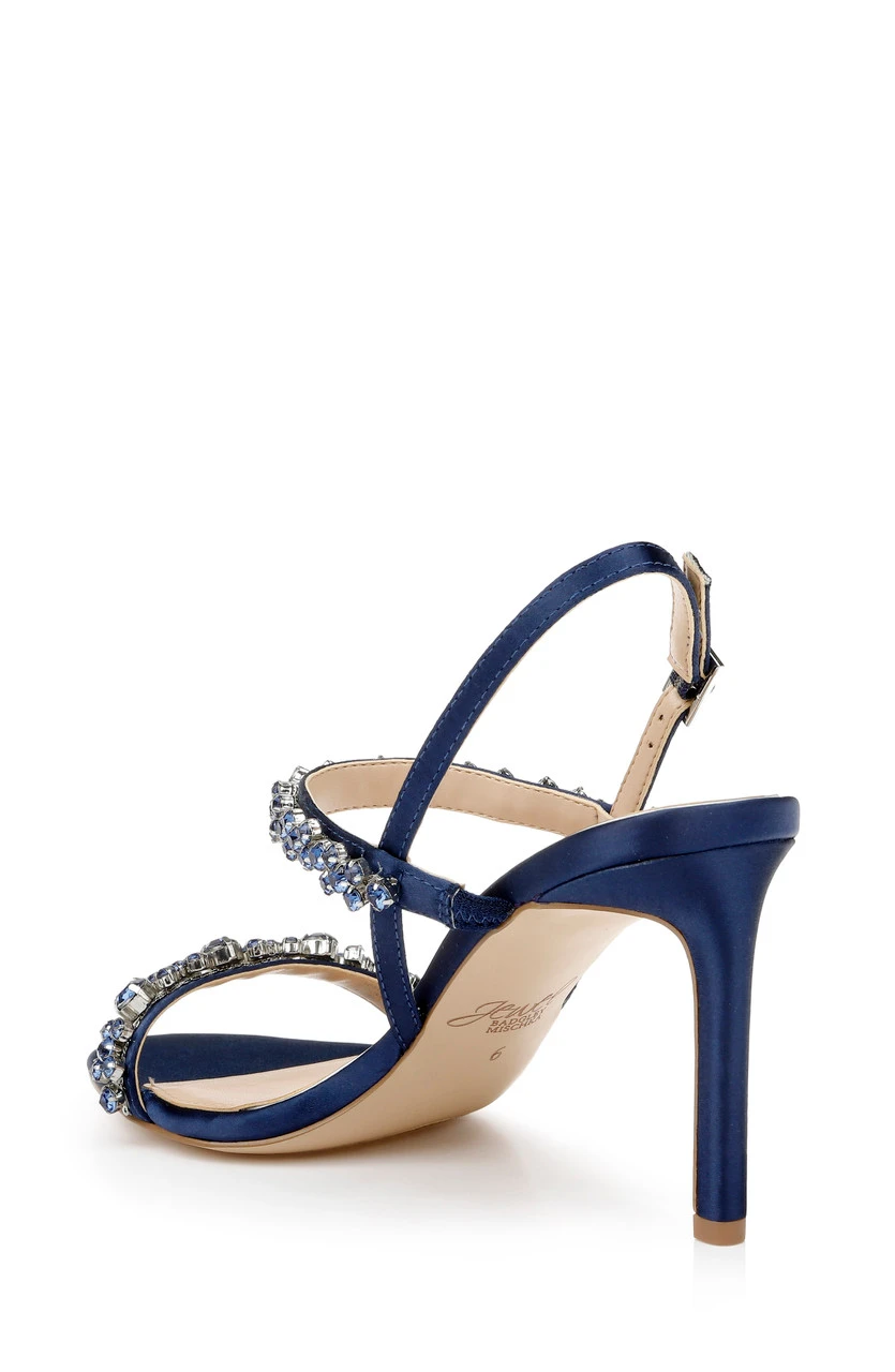 This look celebrates the best elements of design and removes the unnecessary. A slim stiletto heel, double vamp, sleek backstrap, and gorgeous crystals strike the perfect balance.