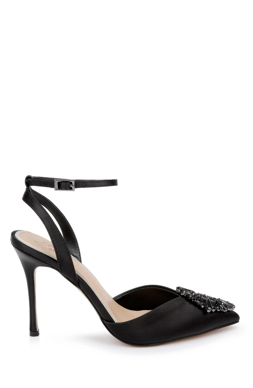 Flaunt it like you mean it in our Gabi. The narrowed pointed toe is decorated in an opulent gemstone buckle that sparkles relentlessly. Evening dinners and dances at your friend’s wedding are sure to be an enchanting experience with these stilettos leading the way.