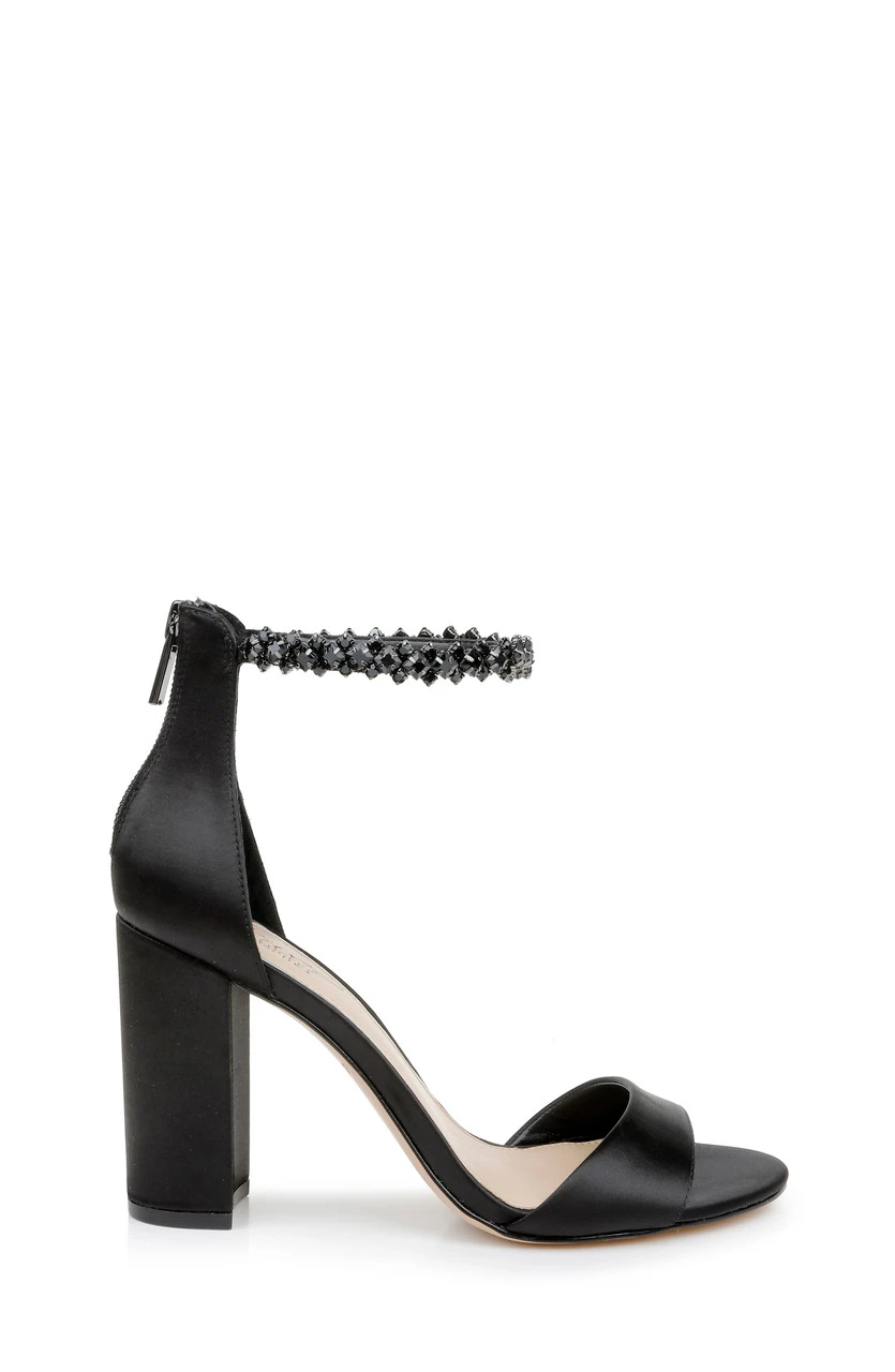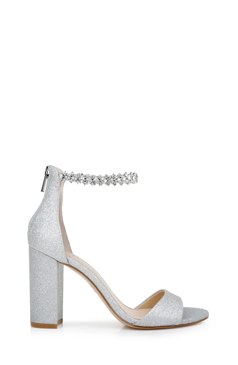 This evening shoe empowers you with strength and height. A simple vamp perfectly contrasts with the crystal-adorned ankle strap. See Lorraine for this look with a kitten heel.
