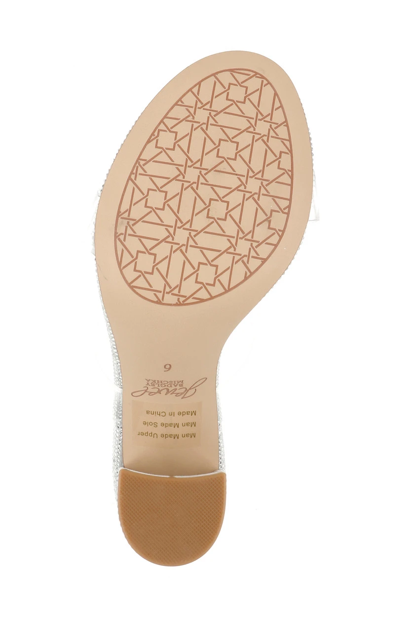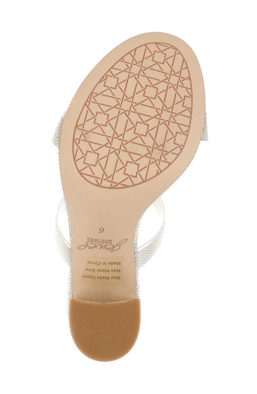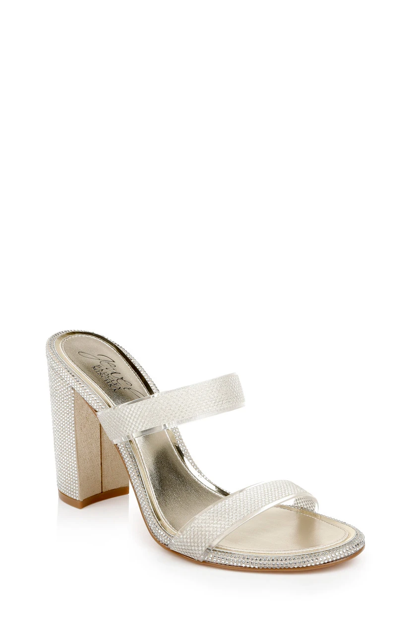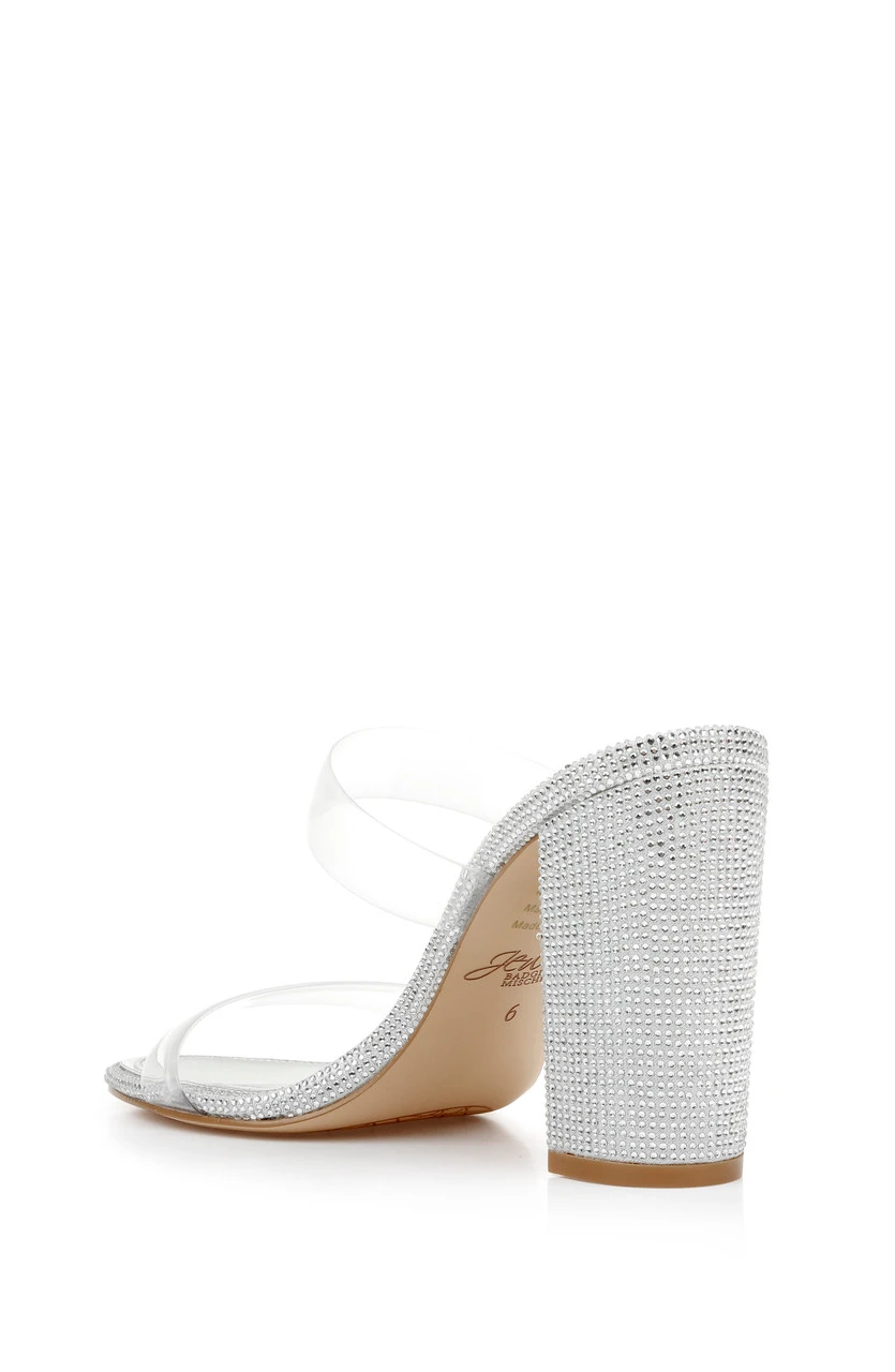 This metallic and fabric style creates a shimmering studded effect. In-vogue design reigns whether you choose the metallic, or a clear take on this look. Take a look at Lovey for this style with a stiletto heel.
